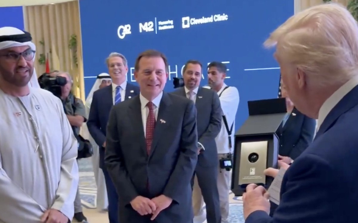 Üçüncü durağı olan BAE’de Devlet Başkanı Muhammed bin Zayed Al Nahyan ile bir ortaya gelen Trump, baş başa görüşmesinin akabinde yaptığı açıklamada ise BAE’nin ABD’ye on yılda yapacağı 1,4 trilyon dolarlık yatırım için teşekkür etti.
