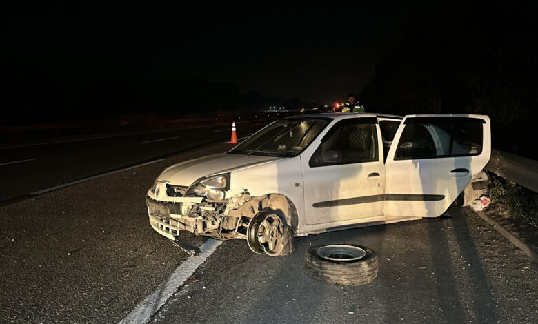 Düzce’de Anadolu Otoyolu’nun İstanbul istikametinde seyreden F.Y.T. yönetimindeki araba, Paşakonağı mevkiinde şoförünün direksiyon hakimiyetini kaybetmesi sonucu bariyere çarptı.