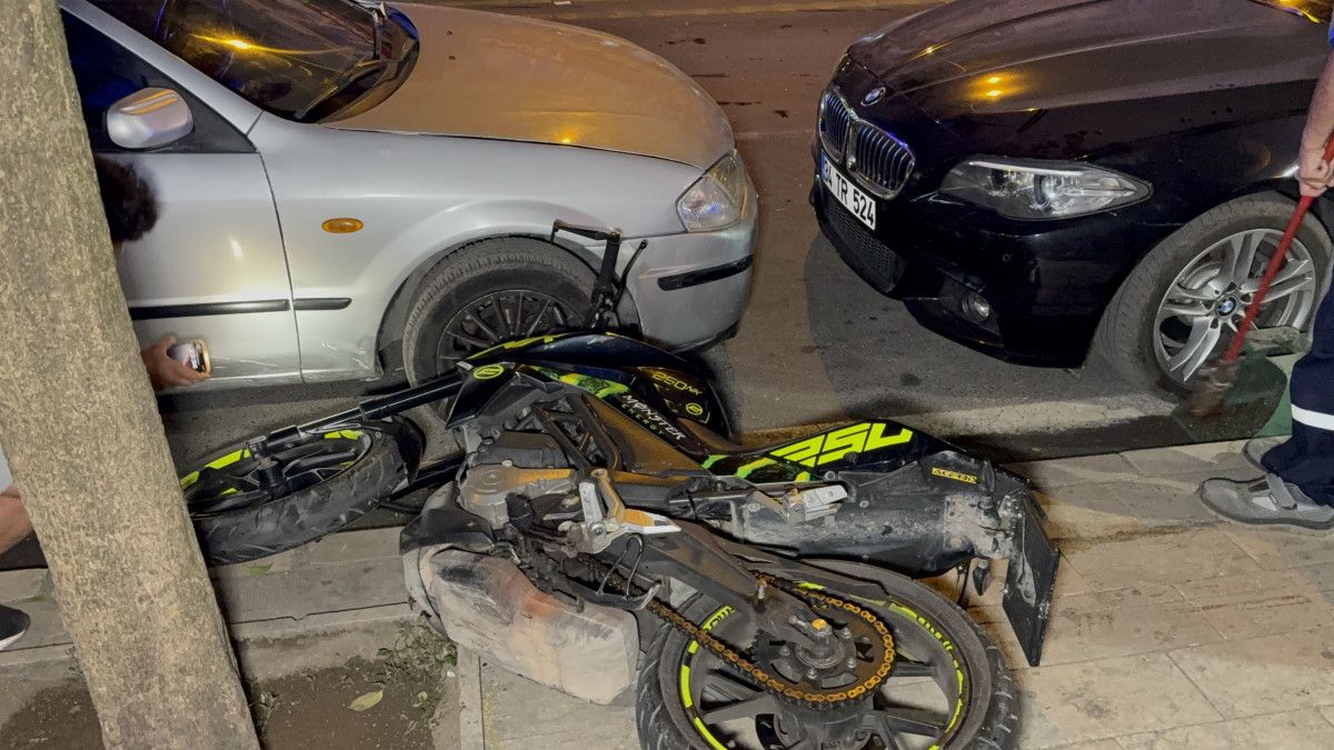 Çarpışmanın tesiri ile elektrikli araba devrilirken, motosiklet savrulup park halindeki 2 araca çarparak durabildi.