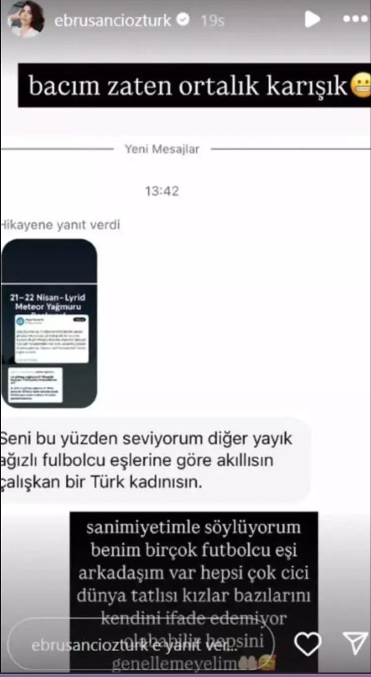 Mesajda “Seni bu yüzden seviyorum başka yayık ağızlı futbolcu eşlerine nazaran akıllısın çalışkan bir Türk kadınısın” yazıyordu.