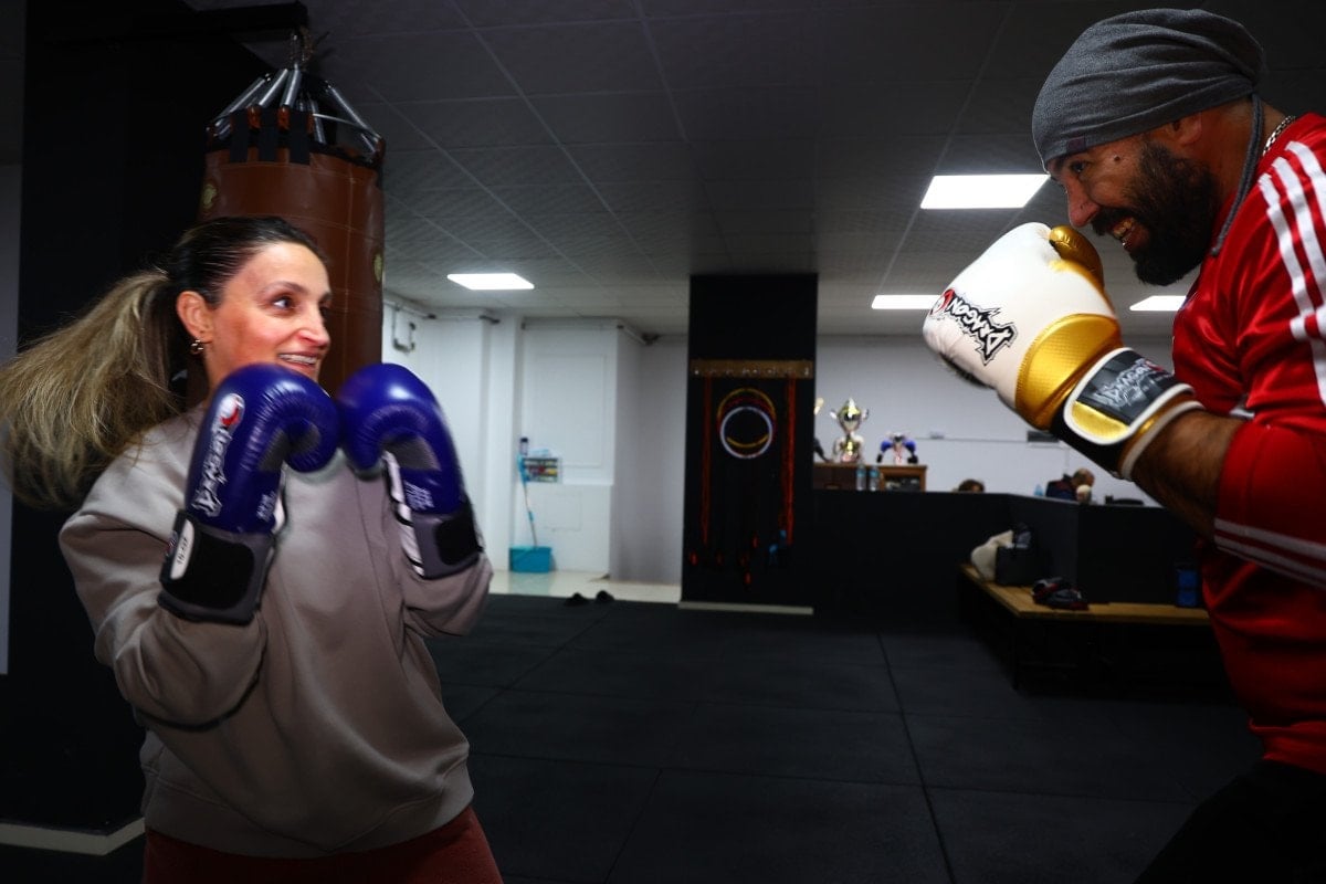 Kickboks dünya ve Avrupa şampiyonu antrenör Hamza Kendircioğlu idaresinde sürdürülen çalışmalarda anne ve oğulları, teknik ve kondisyon egzersizlerini birlikte yaparak vakit zaman rakip, vakit zaman ise partner oldu.