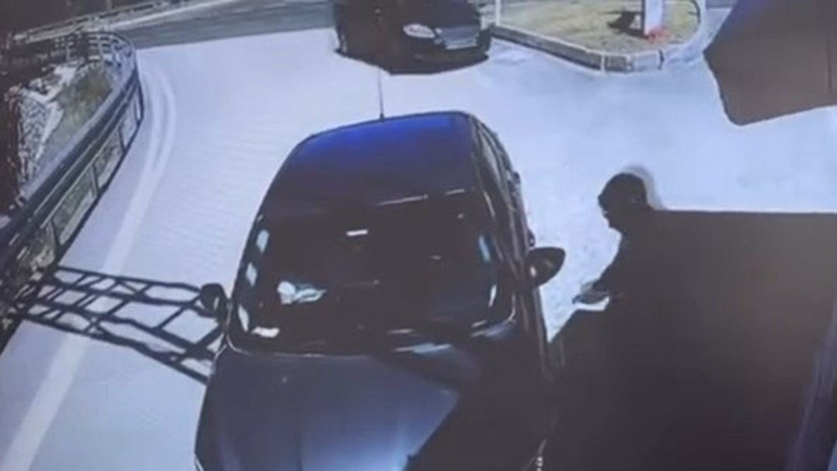 Çalışanın aracın altında kalmaktan saniyelerle kurtulduğu anlar işletmenin güvenlik kamerasına saniye saniye yansıdı.