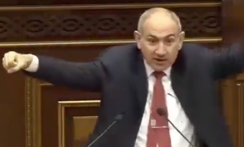 Paşinyan, bugün parlamentoda yaptığı konuşmada, muhalefete karşı sonlarına hakim olamadı.