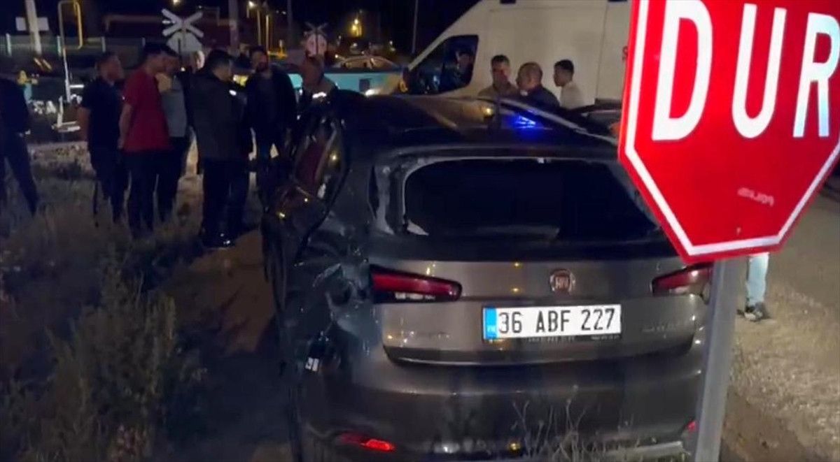Erzurum’dan Kars istikametine giden trenin çarpmasıyla savrulan araçta hasar oluşurken şoför Kol ise yara almadan kurtuldu.