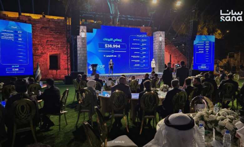 Suriye Devlet Başkanı Ahmed eş-Şara, Şam Kalesi’nde düzenlenen Suriye Kalkınma Fonu açılış merasiminde konuştu.