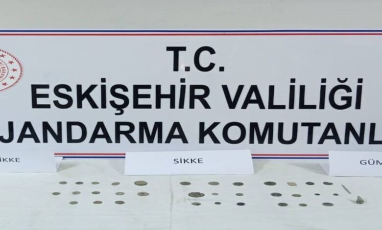 Eskişehir Vilayet Jandarma Komutanlığına bağlı ünitelerin çalışması sonucunda kuşkulu şahıslara ilişkin olduğu tespit edilen araçta yapılan aramada; Roma devrine ilişkin olduğu bedellendirilen 1 adet altın sikke, 1 adet gümüş sikke, 33 adet bronz sikke ve 2 adet nesne ele geçirildi.