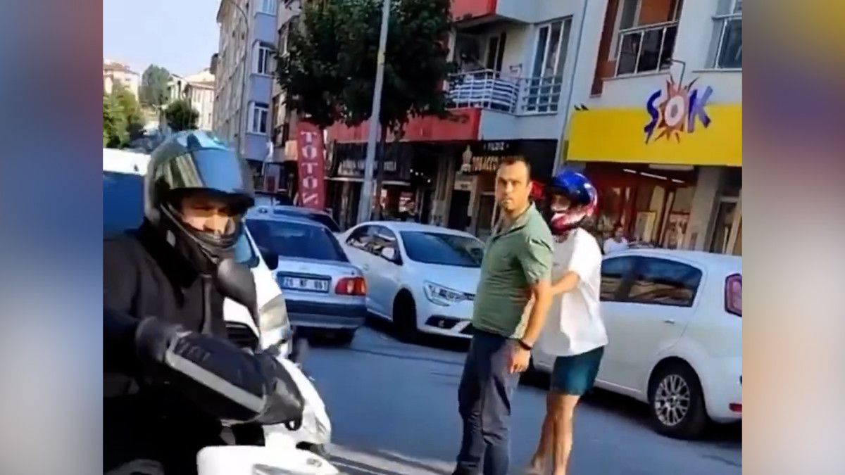 Videonu çekiyorum. Çocuğu var kucağında farkında mısınız? Sen ne yapıyorsun ya insan mısın sen? Şu hareketlerine bak. Küfür kayıtlarını da alığ artık karakola gidiyoruz. Terbiyesiz!