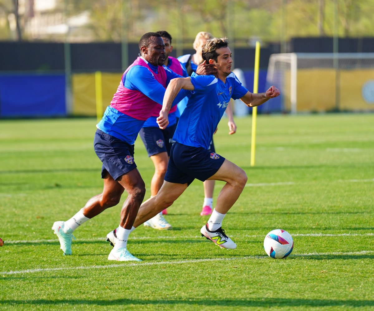 Teknik yönetici Arda Turan idaresinde Kemerburgaz Tesisleri’nde ısınma hareketleriyle başlayan egzersiz, 5’e 2 top kapma çalışmasıyla devam etti. Eflatun-sarılı takım, ağır tempoda geçen idmanı taktik ve şut çalışmaları ile tamamladı.