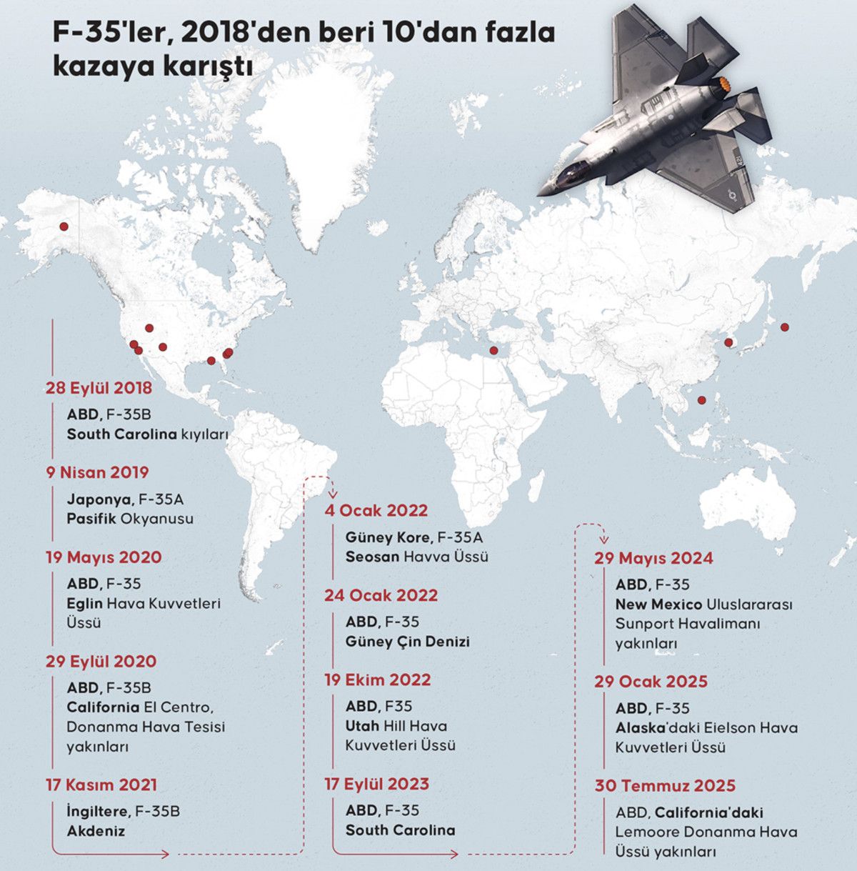 2018’den bu yana F-35 savaş uçaklarının yaptığı 10’dan fazla önemli kaza tek haberde derlendi.