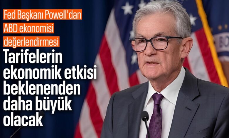 Fed Başkanı Powell, “Şu ana kadar açıklanan tarife artışlarının düzeyi beklenenden çok daha büyük. Birebir durumun ekonomik tesirler için de geçerli olması mümkün, bu tesirler ortasında daha yüksek enflasyon ve daha yavaş büyüme yer alacaktır.” diye konuştu.