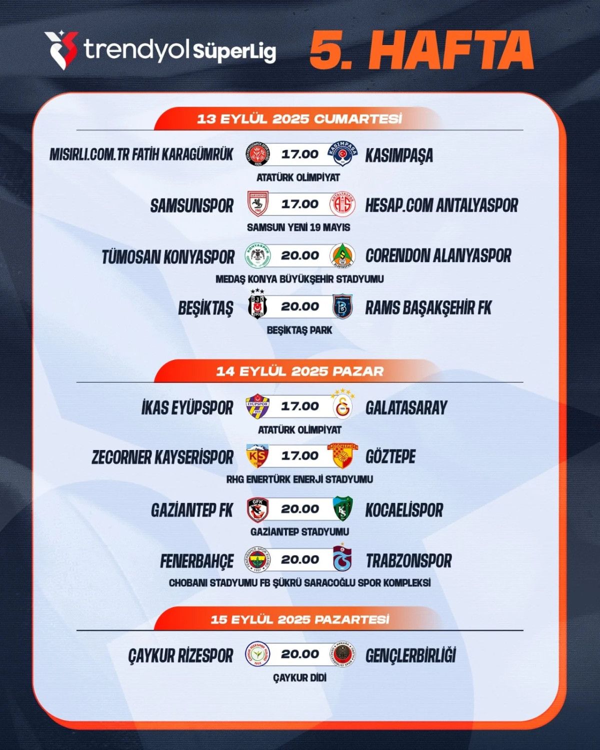 Türkiye Futbol Federasyonu (TFF), Trendyol Süper Lig’de 5. ve 6. hafta oynanacak maçların tarihlerini açıkladı.
