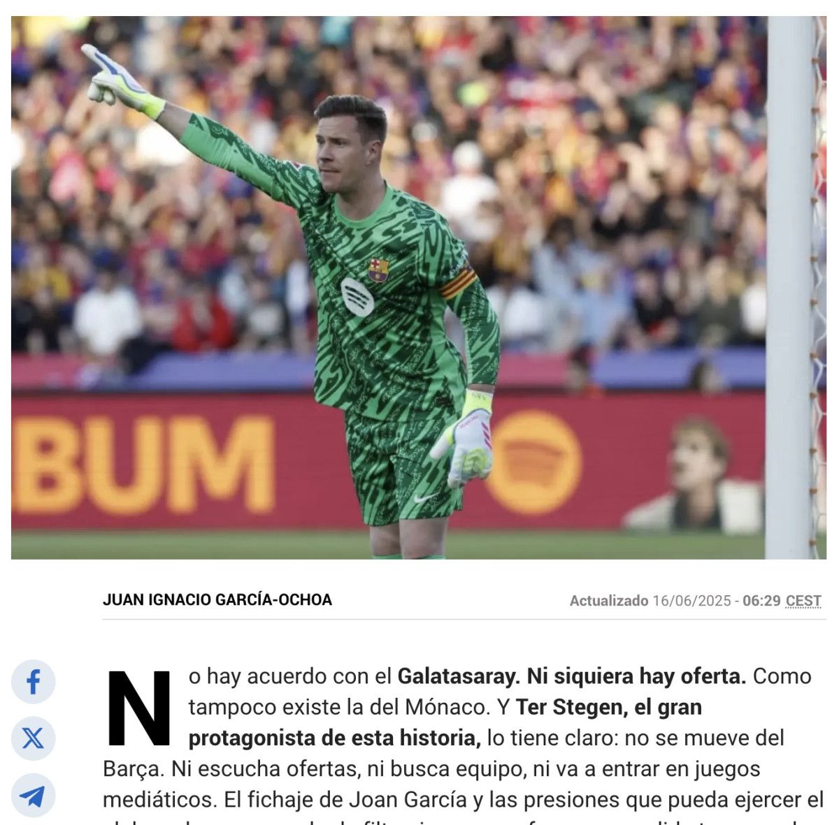 İspanyol basınından Marca’da yer alan habere nazaran Galatasaray’ın Ter Stegen ile bir mutabakat yapmadığı ve hatta bir teklif de iletilmediği belirtildi.