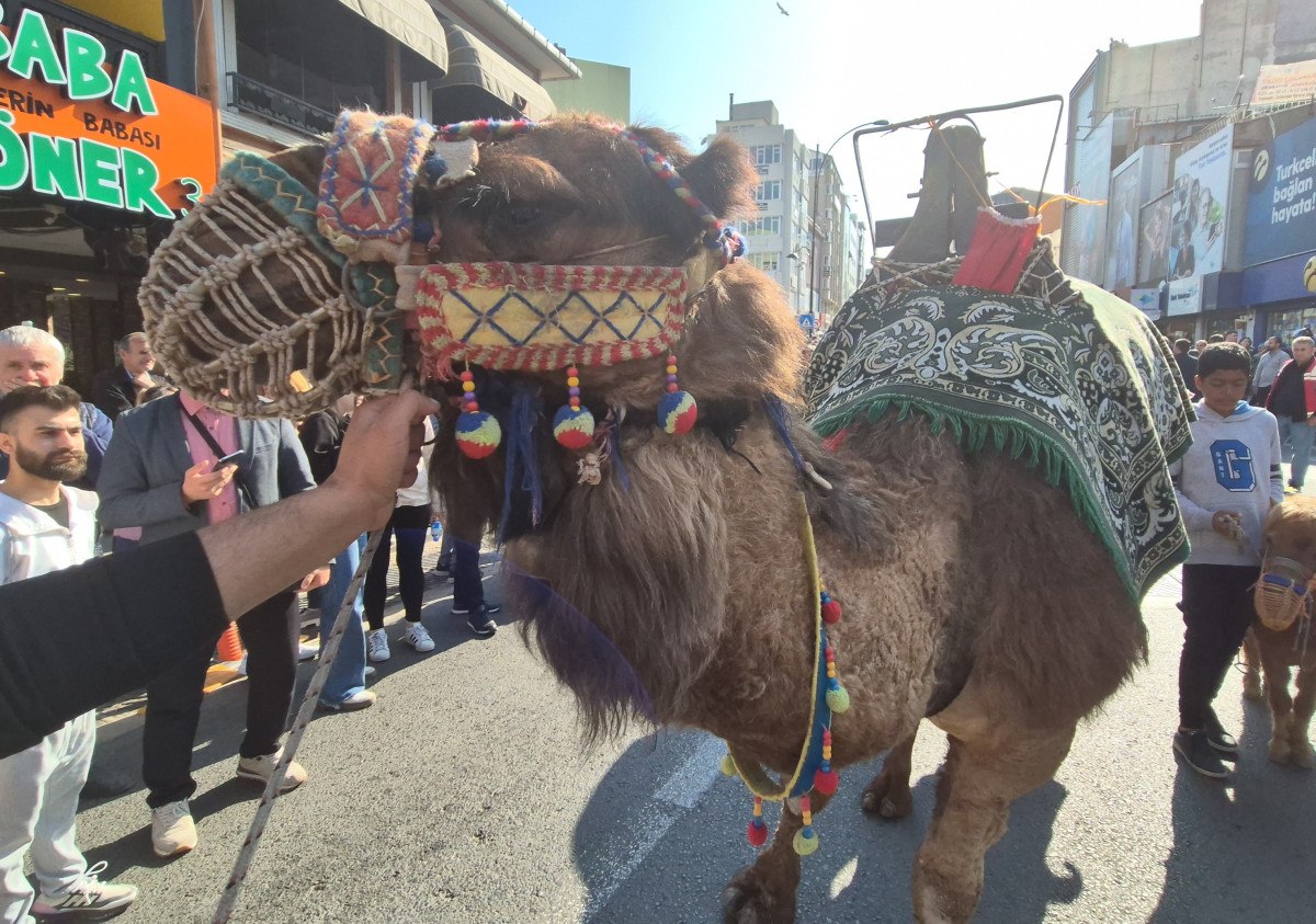 Kortejde yer alan süslenmiş fayton ve deve, çocuklar başta olmak üzere iştirakçilerin büyük ilgisini çekti.