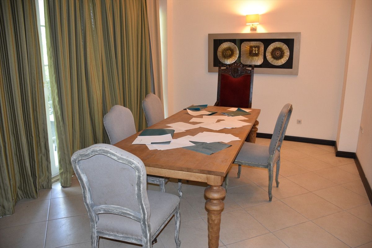 Cumhurbaşkanı Erdoğan’ın kaldığı odanın ardındaki kısımdaki yerde seccadelerin serili olması, toplantı masasındaki dağınık belgeler, suikast timine karşı güvenlik güçlerinin kahramanca karşı koyduğu oteldeki bir öbür detay olarak öne çıkıyor.