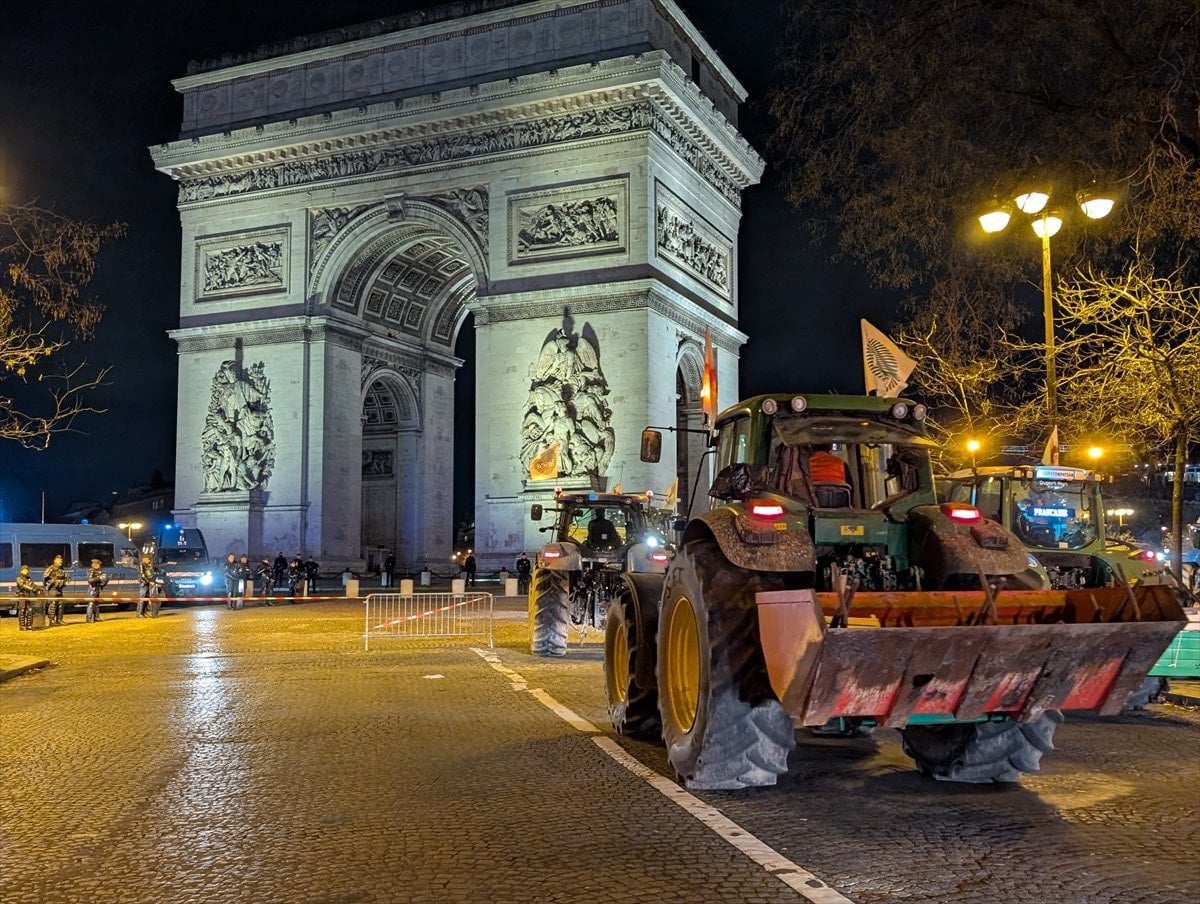 Çiftçi konvoyları, Champs-Elysees’deki eylemlerinin ardından Dışişleri Bakanlığı ve Ulusal Meclis binası önünde toplanan çiftçilerin yanına hareket edecek.