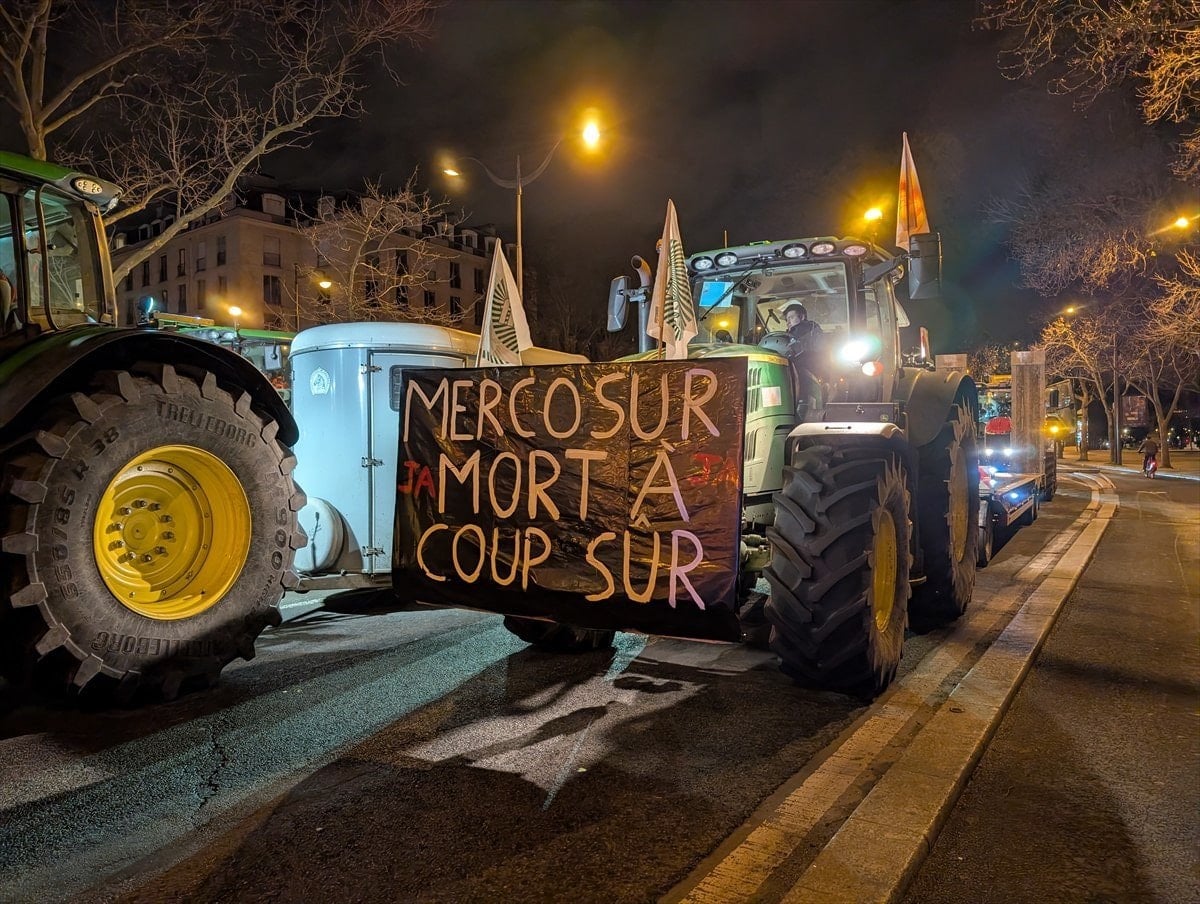 Fransa’da Avrupa Birliği ile Güney Ortak Pazarı (MERCOSUR) ortasındaki muahede, çiftçilerin yansısını çekmişti.