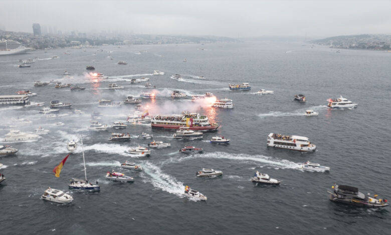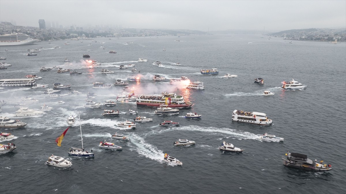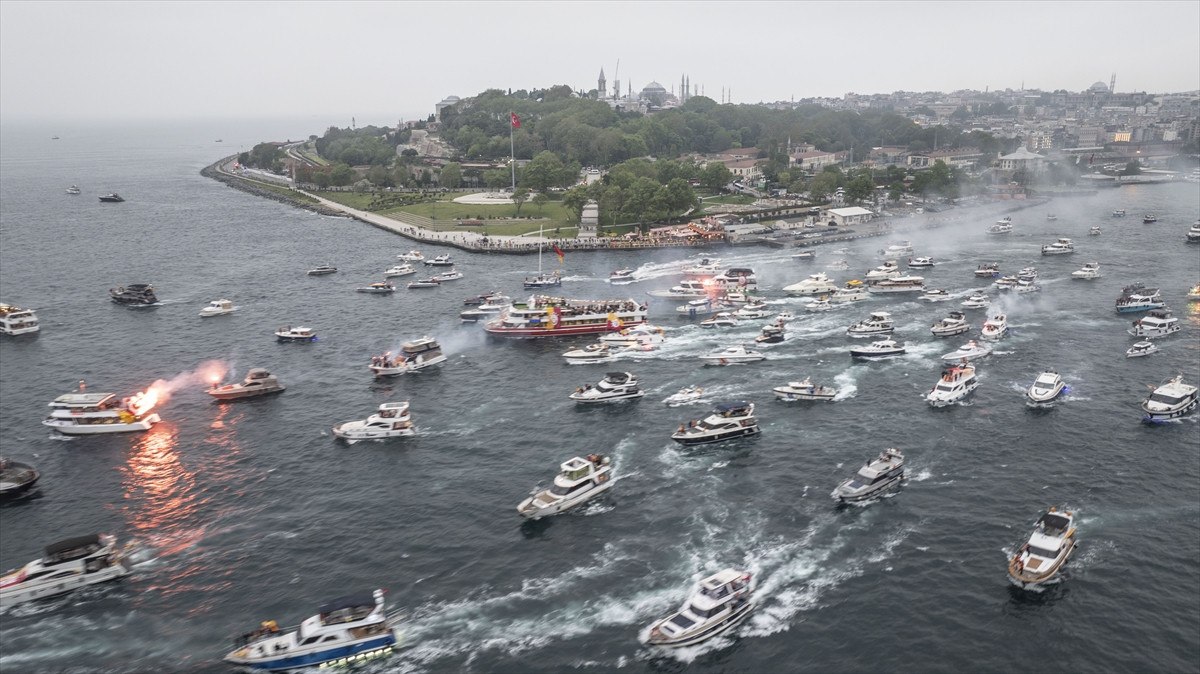 Takım, tekne ile buradan hareket ederek kısa bir boğaz çeşidinin akabinde kutlamaların devamının yapılacağı Yenikapı’ya ulaştı.