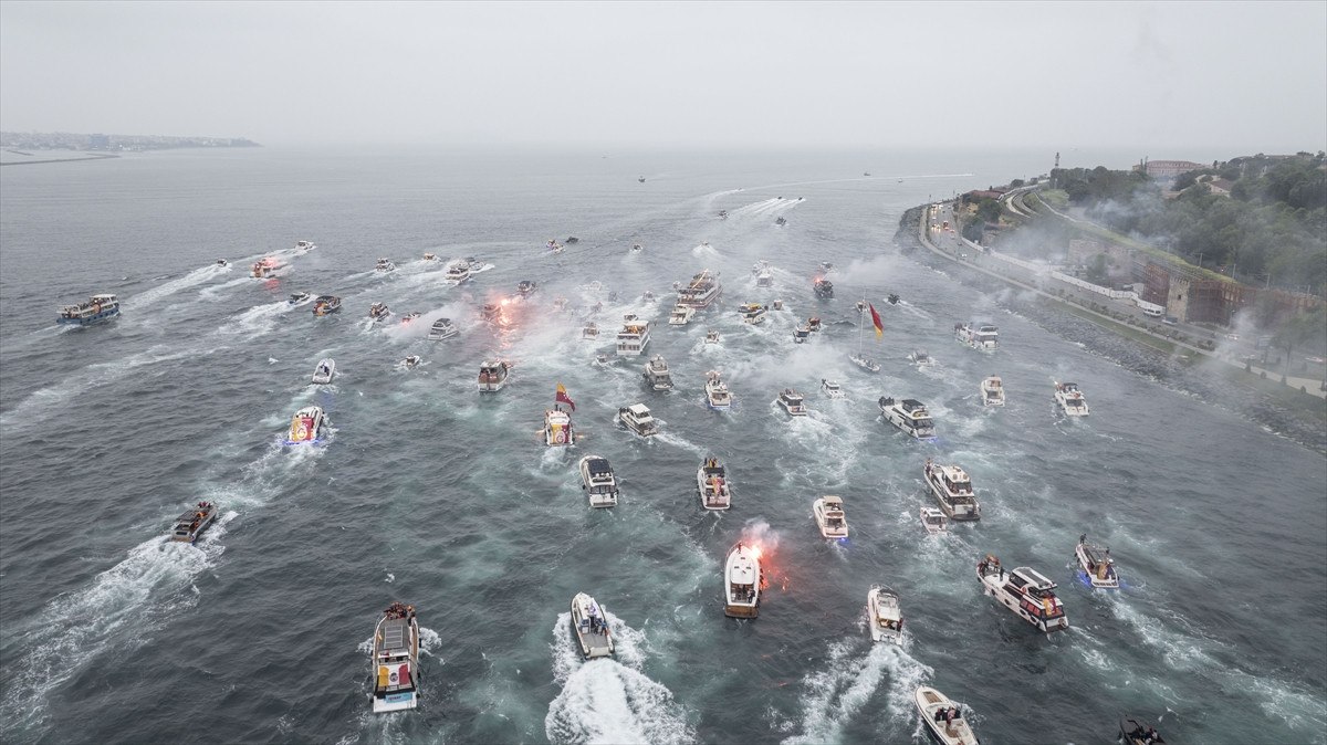 Kornalar ve tezahüratlar eşliğinde Sarayburnu’ndan hareket eden Galatasaray ekibi eşsiz anlar yaşayarak Yenikapı miting alanında bekleyen binlerce Galatasaray taraftarı ile buluştu.