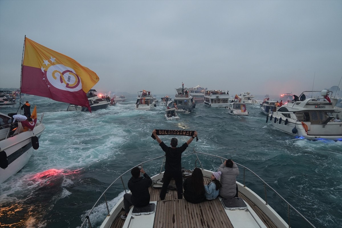 Yolculuk boyunca irili-ufaklı tekneler Galatasaray kadrosunu taşıyan tekneye eşlik etti.