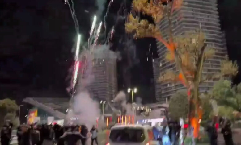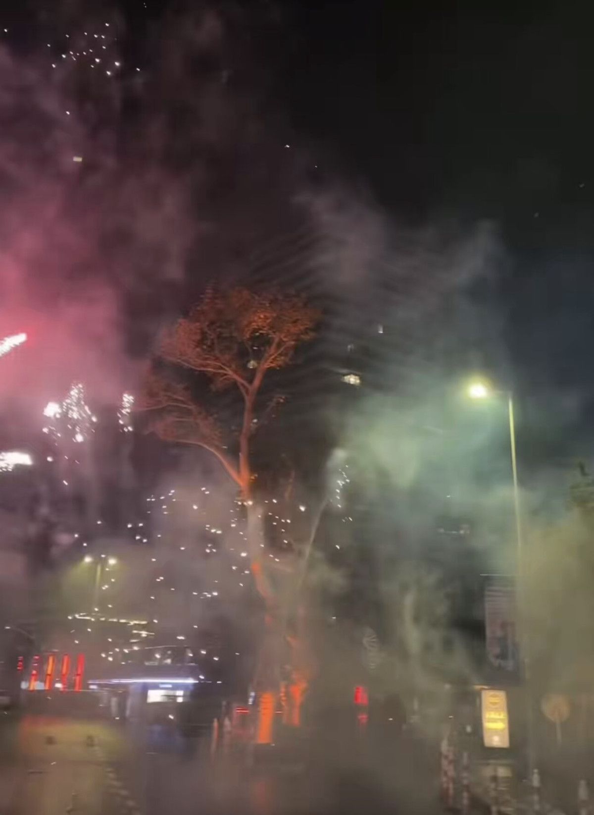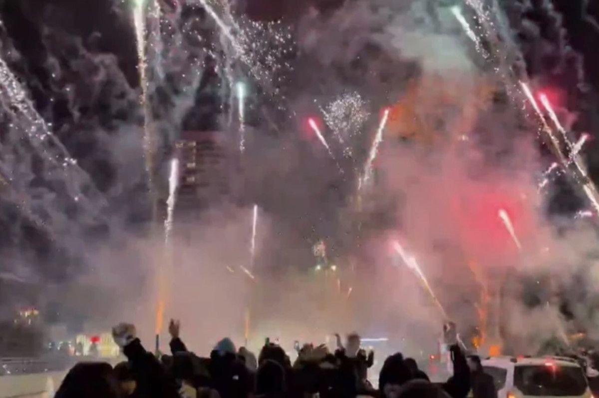 Taraftarların yaktığı havai fişekler gökyüzünü aydınlatırken, o anlar etrafta bulunanların cep telefonlarıyla kaydedildi.