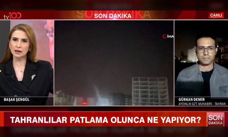 İsrail ile İran ortasında şiddetlenen çatışmalarda son durumu Aydınlık gazetesi muhabiri Gürkan Demir, TV100 ekranlarında İran’ın başşehri Tahran’dan aktardı.