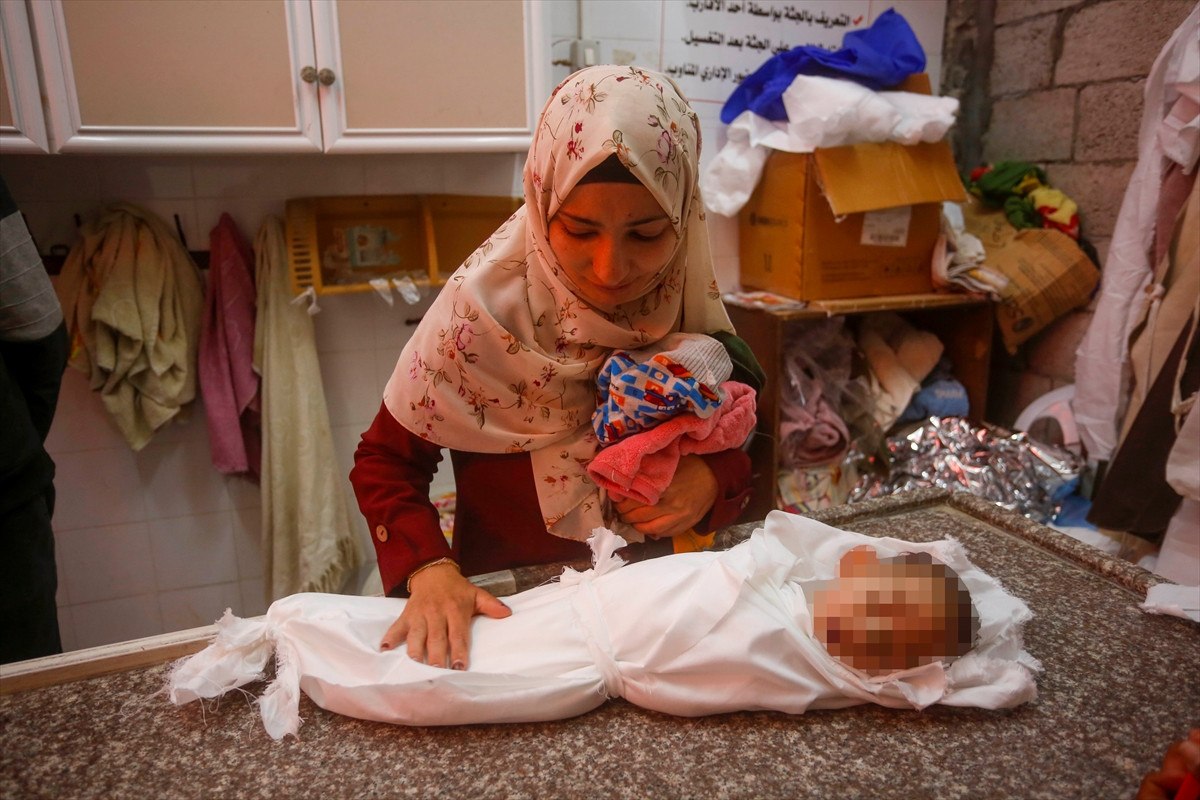 Gazze Şeridi’ne uygulanan ablukanın 47’nci gününde, ağır beslenme yetersizliği ve ilaç eksikliği nedeniyle hayatını kaybeden 11 aylık Udai Ahmed, Deyr el-Belah kentindeki Aksa Şehitleri Hastanesi’nde annesi ve büyükannesi tarafından son seyahatine uğurlandı.