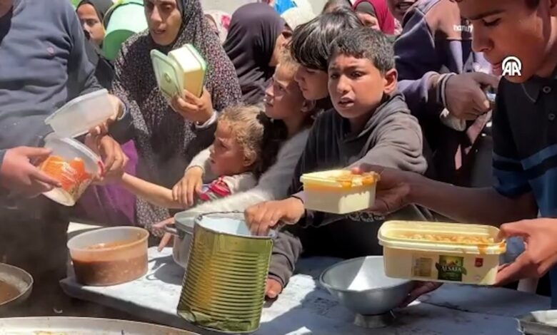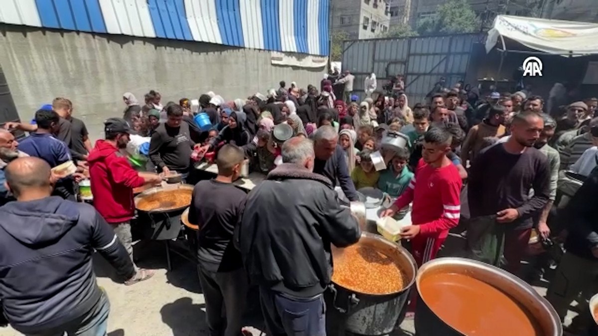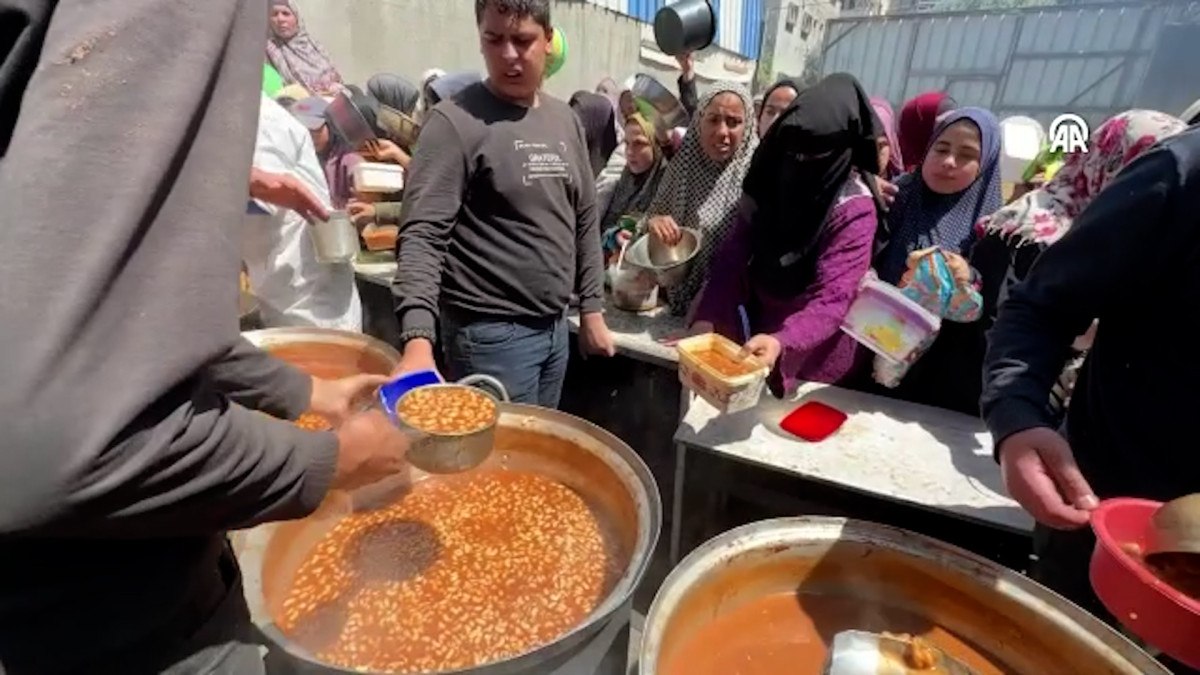 Gazze’nin orta kesitindeki Nusayrat Mülteci Kampı’nda savaşın yanı sıra bölgedeki “insani krizle” uğraş eden Filistinliler için sıcak yemek dağıtımı yapıldı.