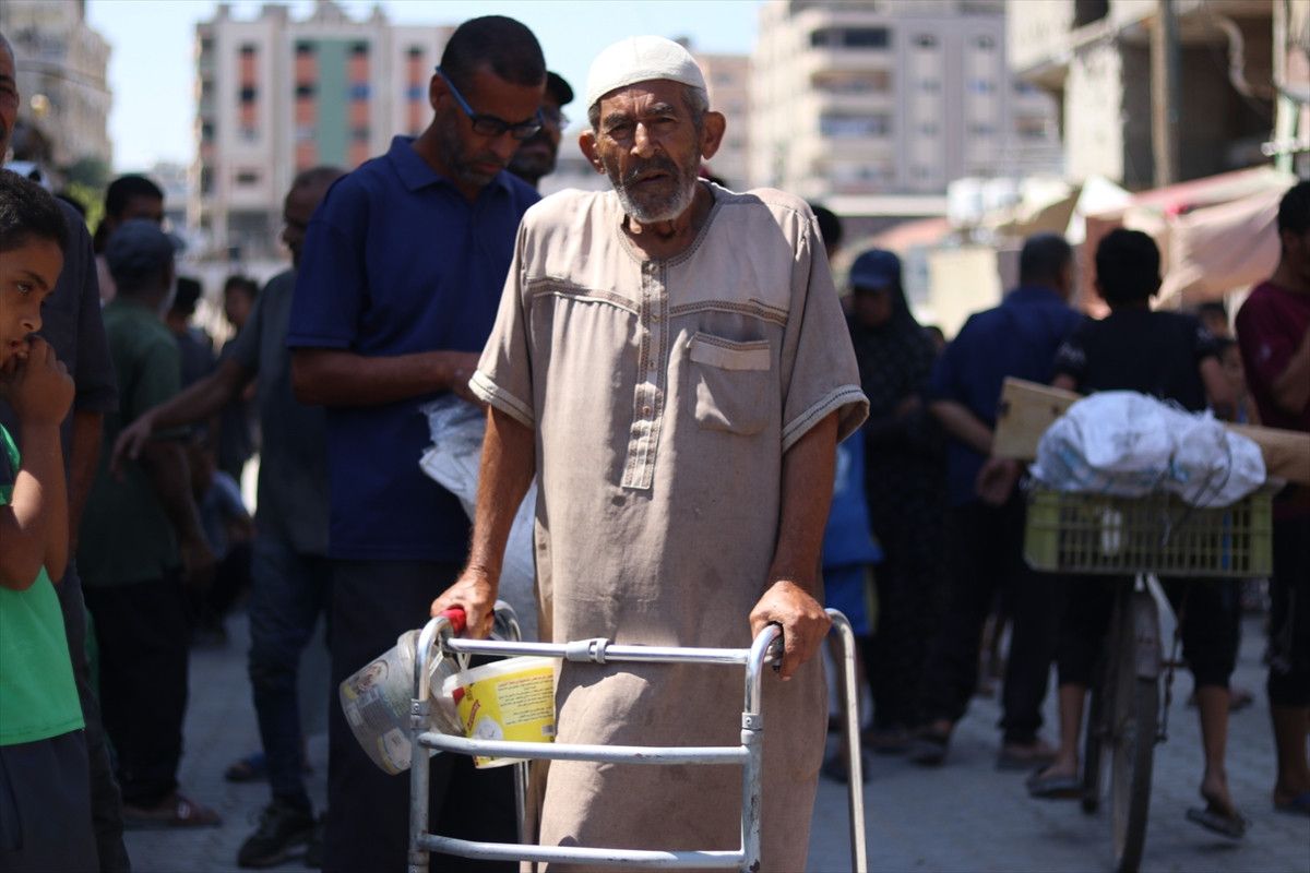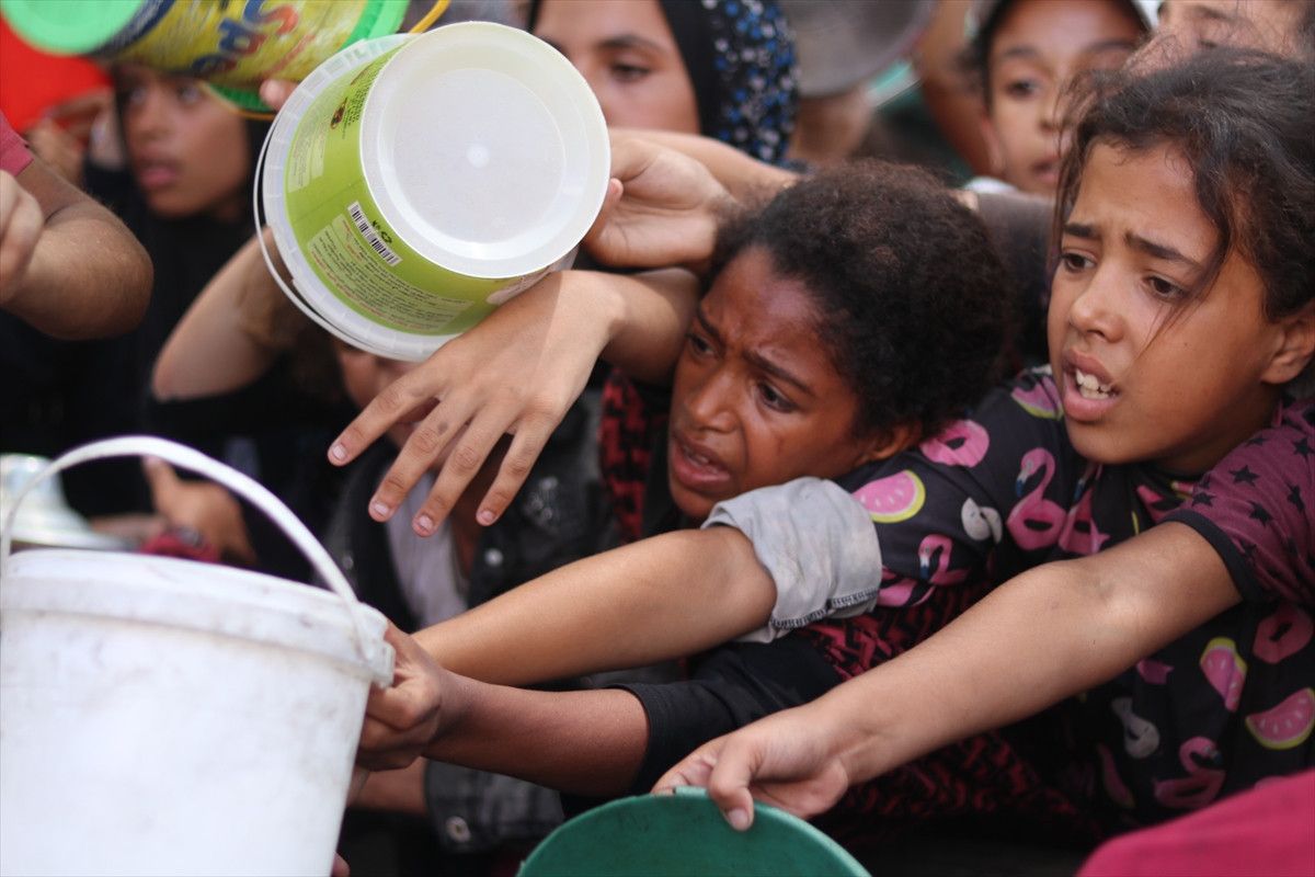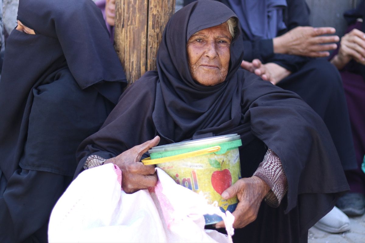Gazze Şeridi’nin merkezindeki Nuseyrat Mülteci Kampı’nda gerçekleşen dağıtım sırasında yoğunluk oluştu.