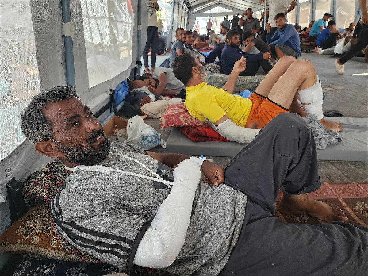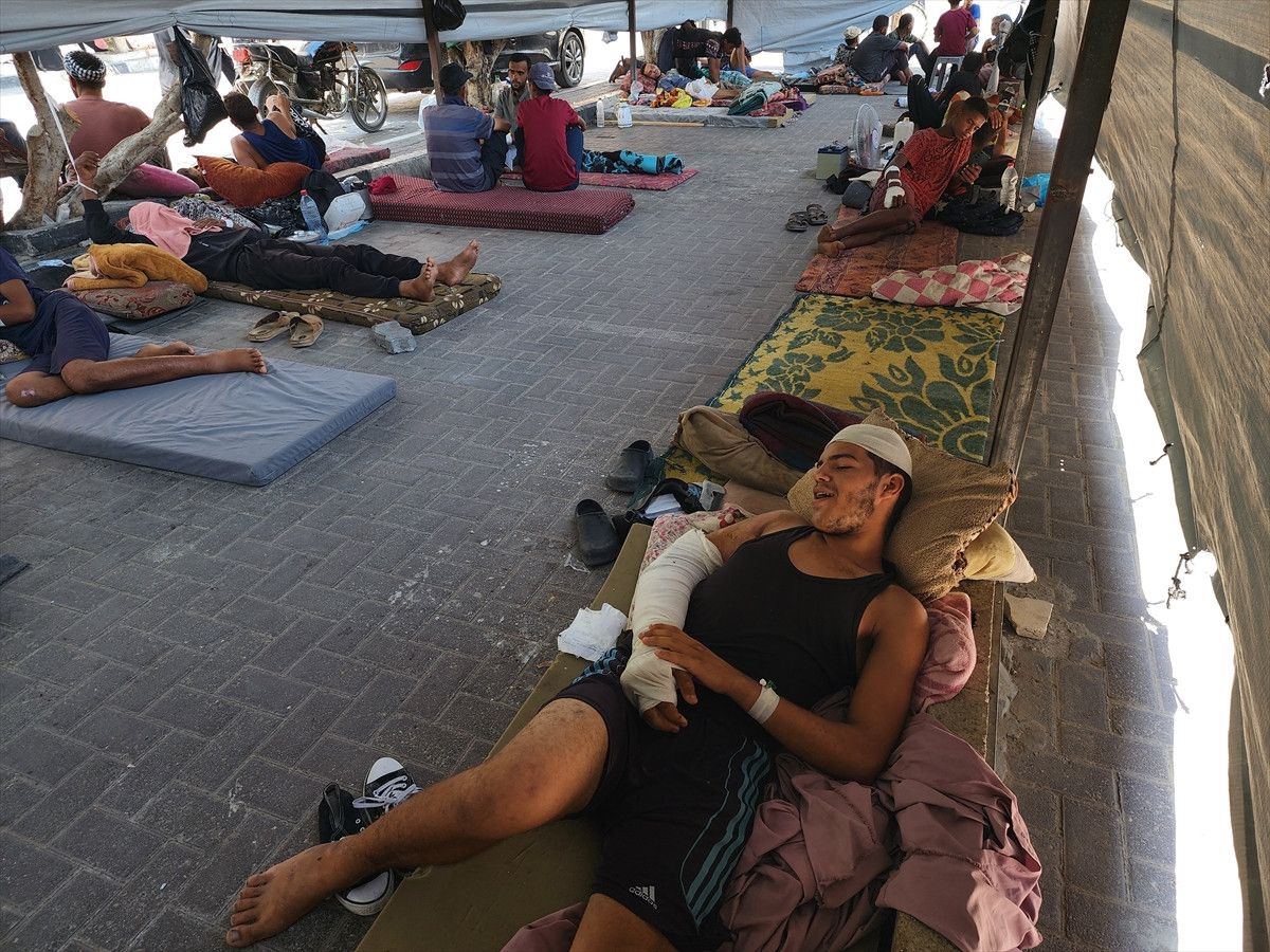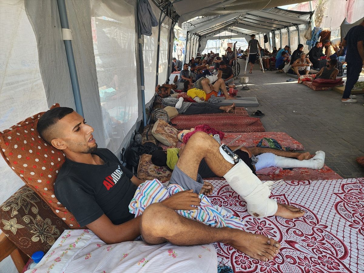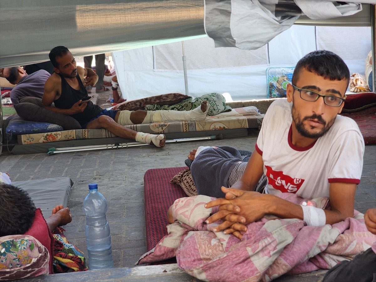 Gazze Şeridi’nin güneyindeki Han Yunus kentinde bulunan Nasır Hastanesi’nin avlusuna kurulan sahra çadırlarında yaklaşık bin yaralı tedavi ediliyor.