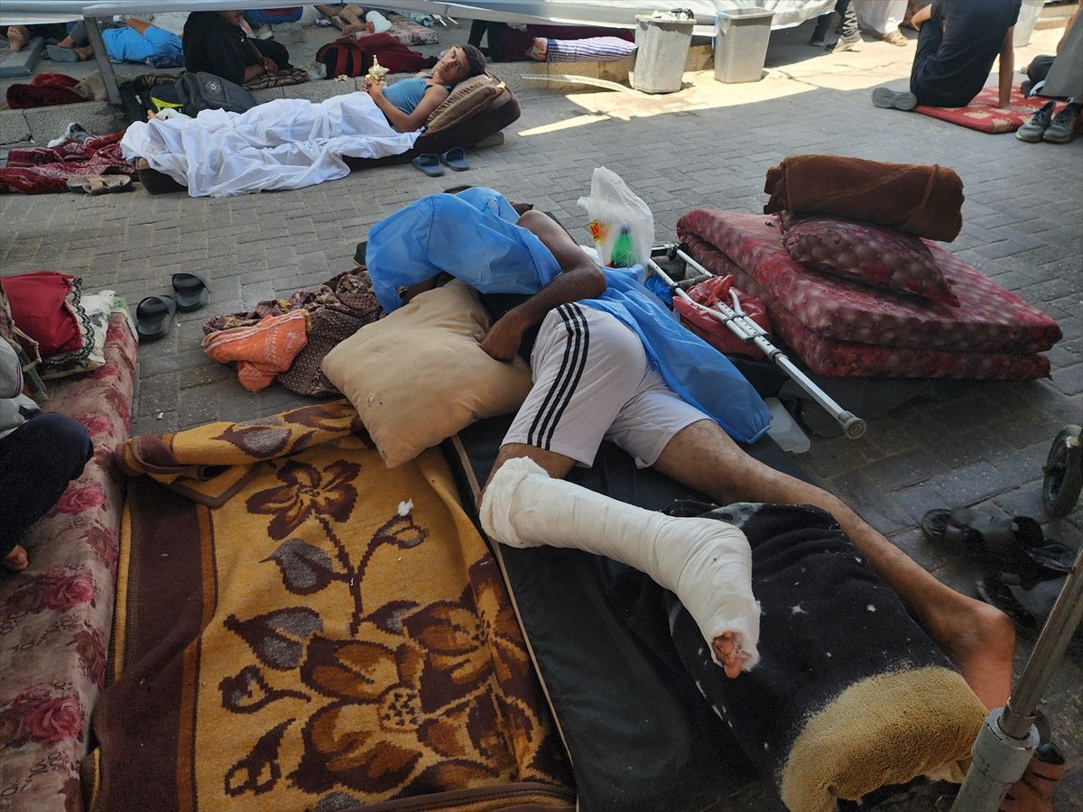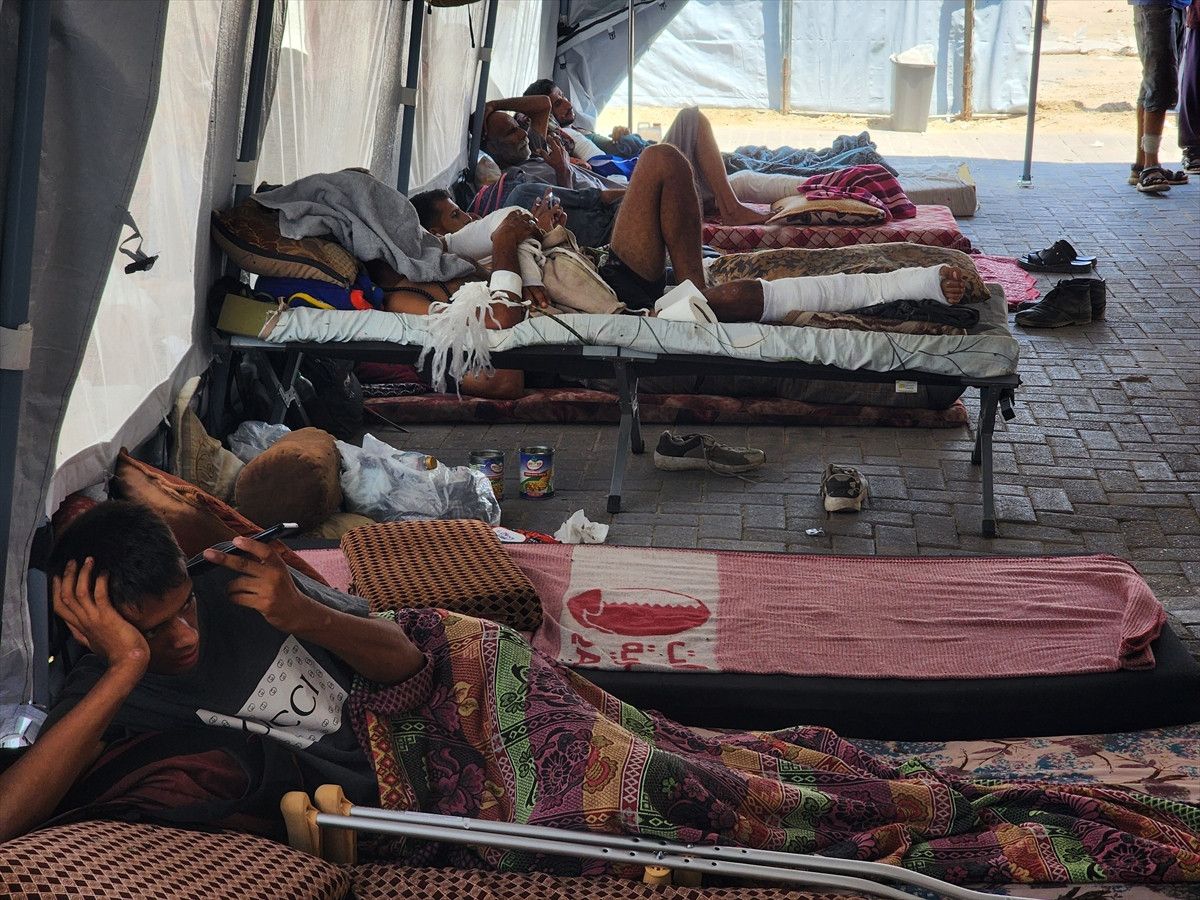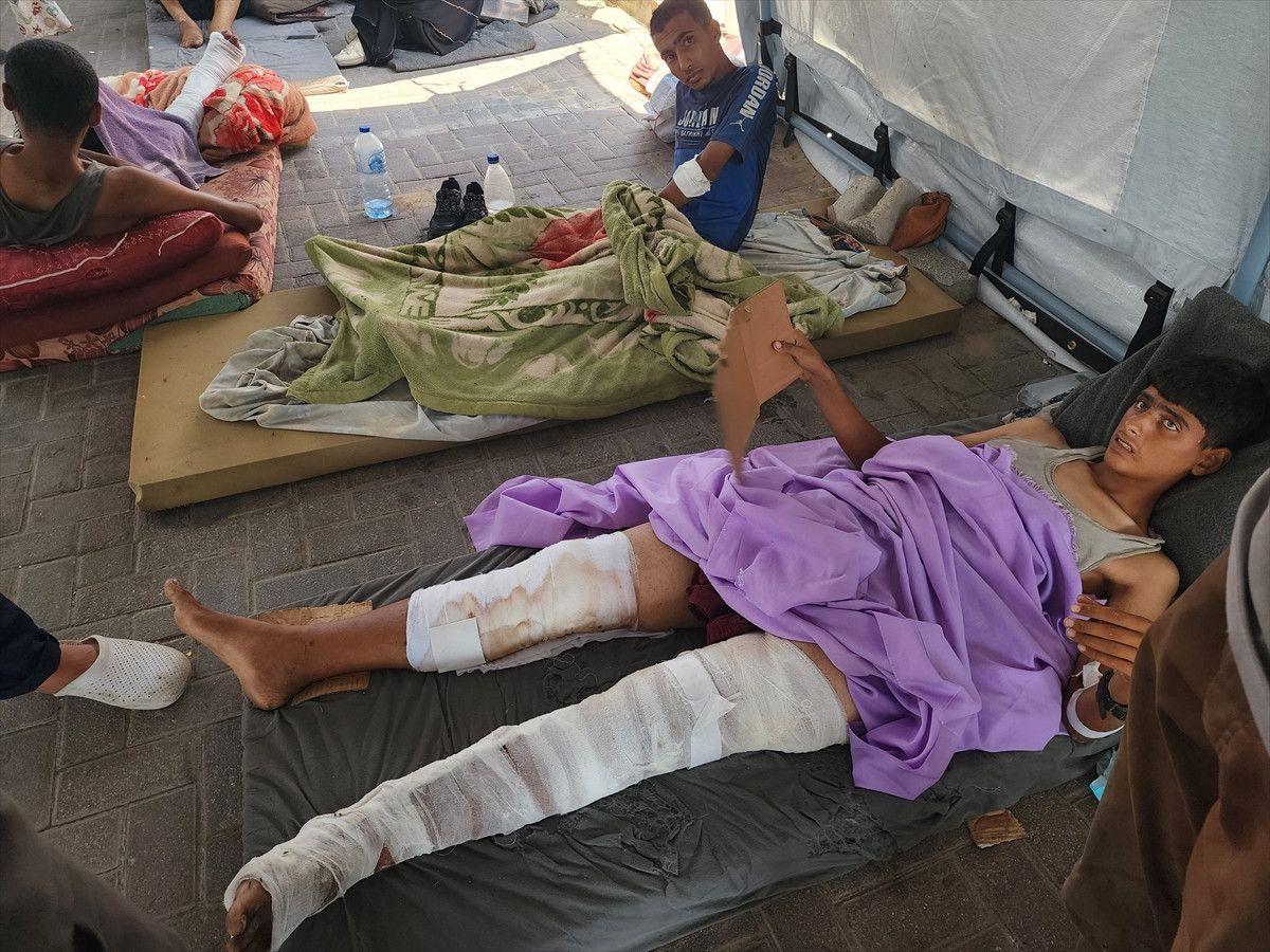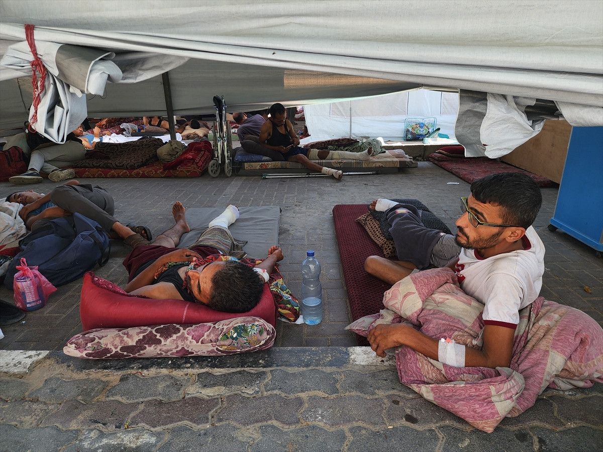 Gazze Şeridi’nin güneyindeki Han Yunus kentinde bulunan Nasır Hastanesi’nin avlusuna kurulan sahra çadırlarında yaklaşık bin yaralı tedavi ediliyor.