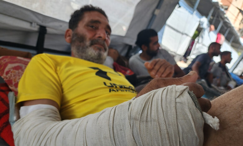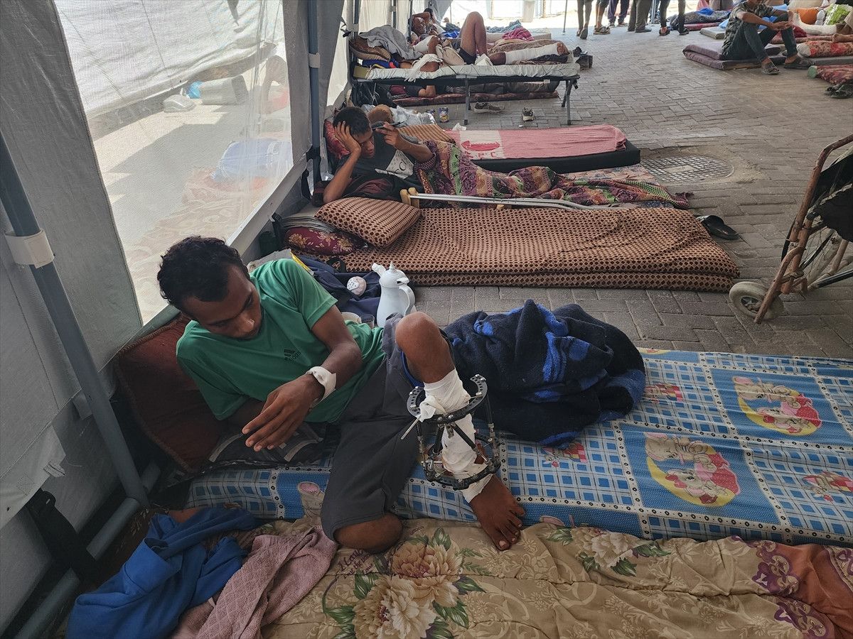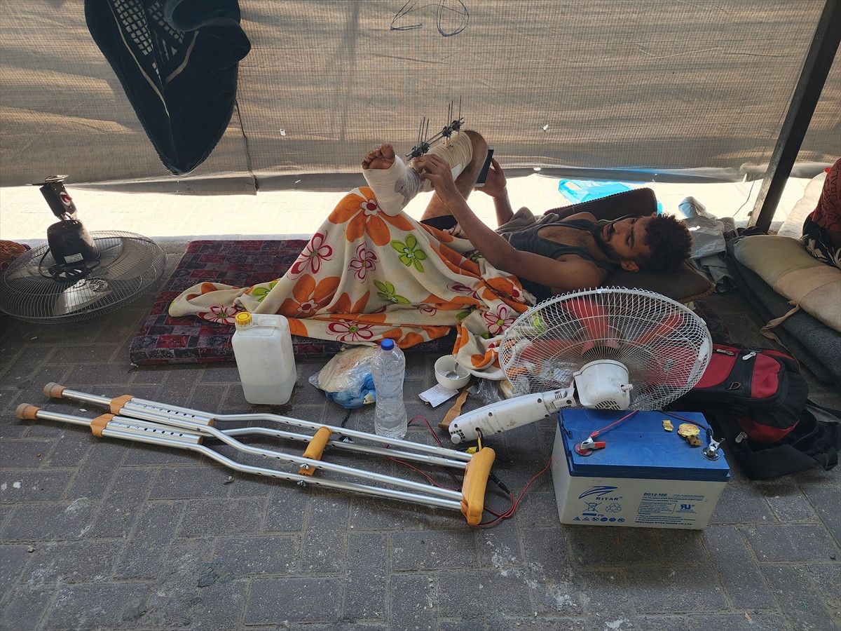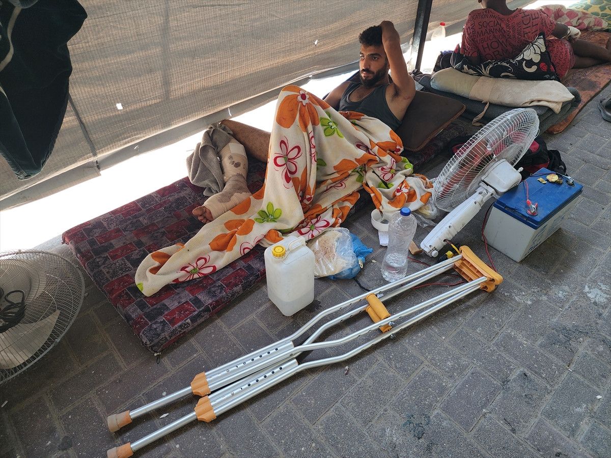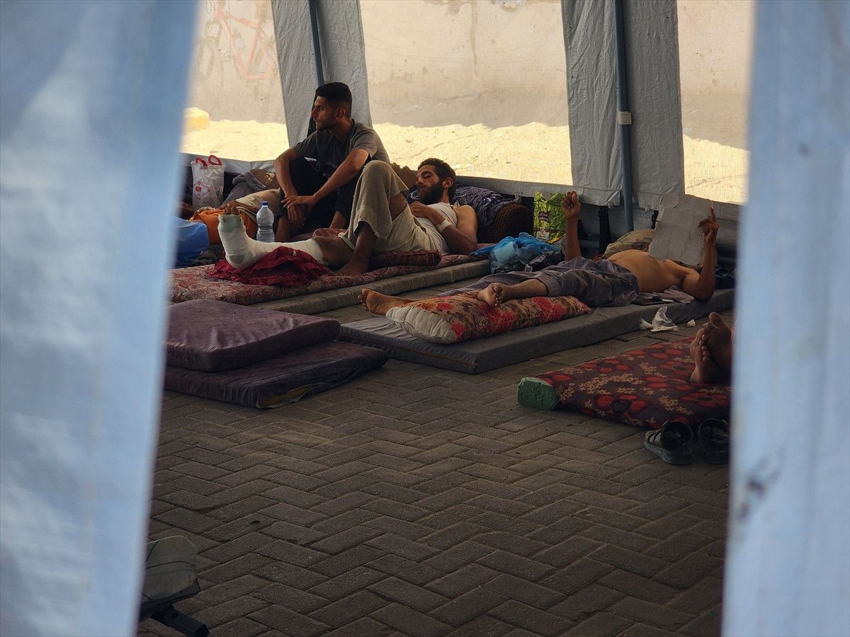 Gazze Şeridi’nin güneyindeki Han Yunus kentinde bulunan Nasır Hastanesi’nin avlusuna kurulan sahra çadırlarında yaklaşık bin yaralı tedavi ediliyor.