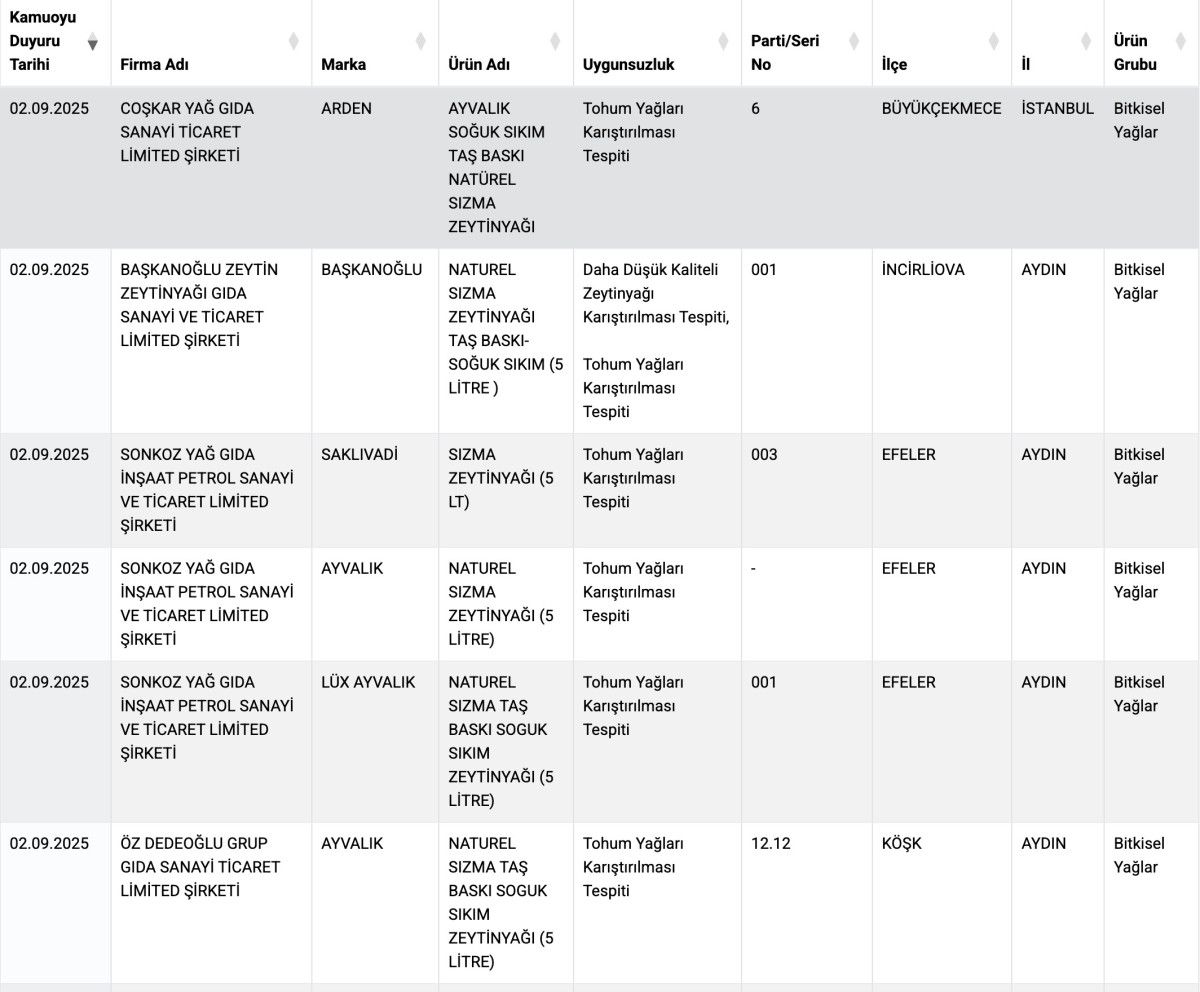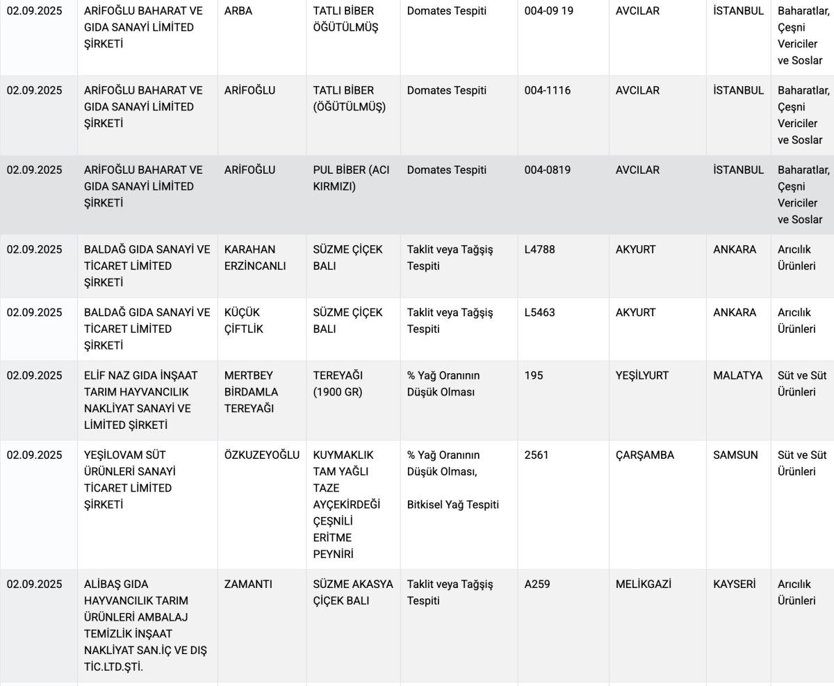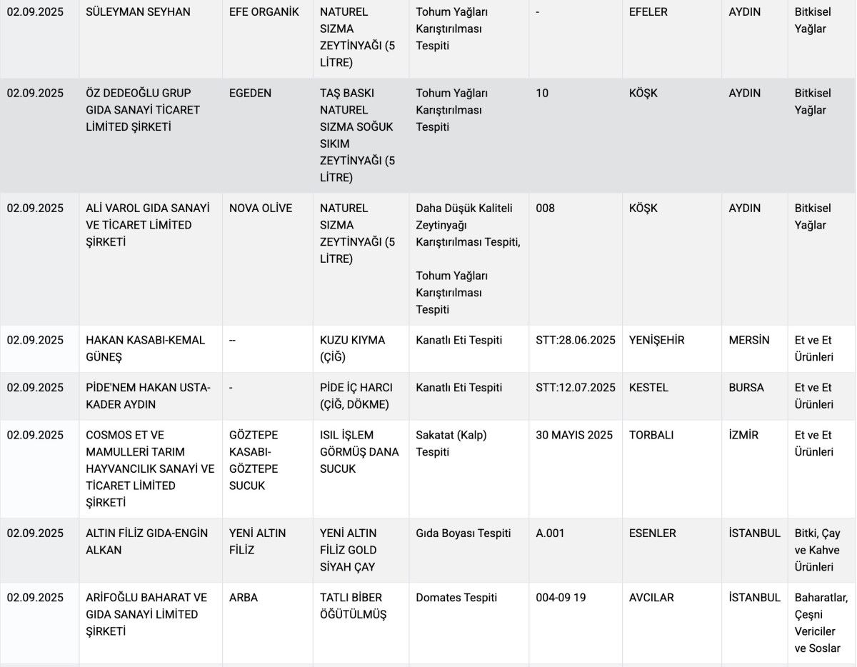 Tarım ve Orman Bakanlığı, Türkiye genelinde yaptığı kontroller sonucunda tespit ettiği uygunsuzlukları yayımlamayı sürdürüyor.