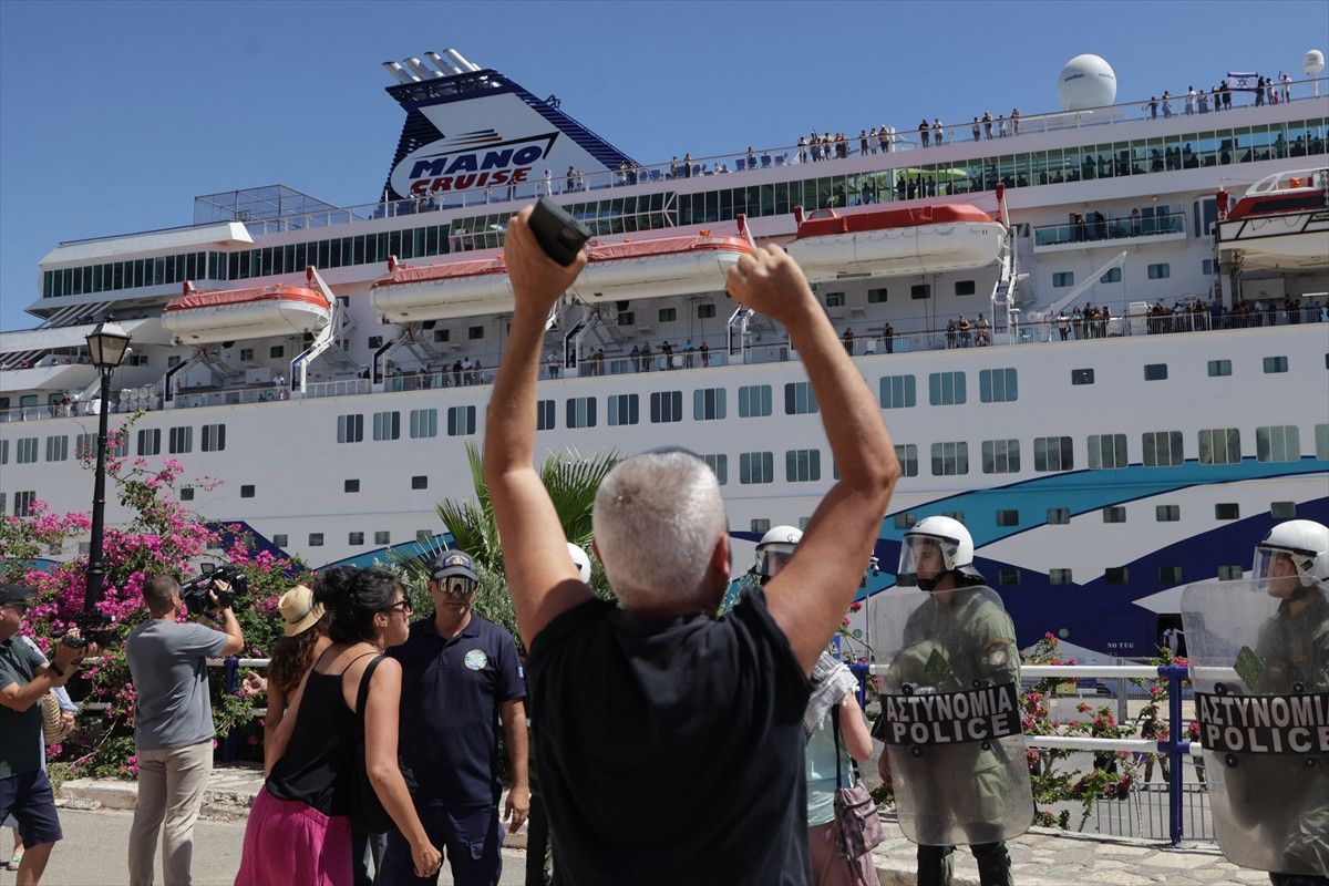 Girit Adası’nda göstericiler, İsrailli kruvaziyer yolcularının gelişini protesto etti