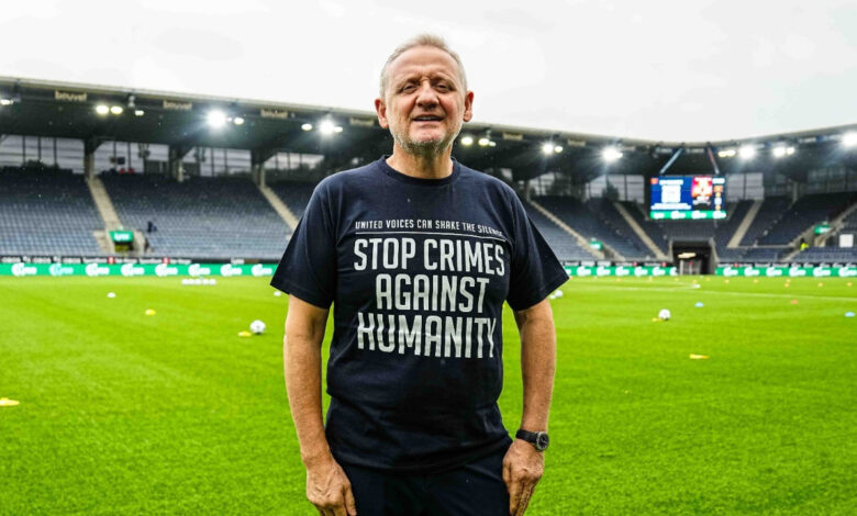 Turuncu-lacivertli kulübün başkanı Göksel Gümüşdağ, üzerinde “İnsanlığa karşı işlenen cürümleri durdurun” ve “Birleşen sesler sessizliği bozar” yazılı siyah tişörtü giyerek AA muhabirine açıklamalarda bulundu.