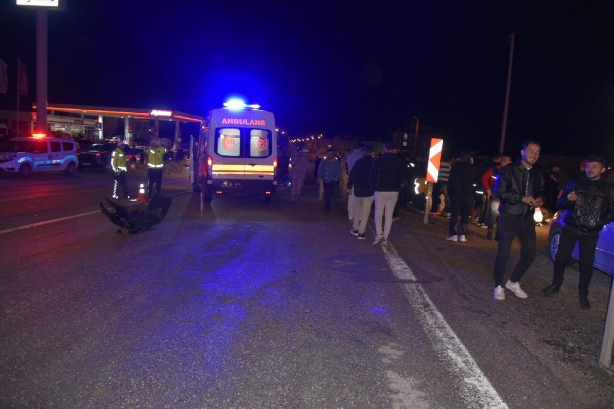 Çarpışmanın tesiriyle savrulan arabalardan biri yolun kenarındaki 2 şahsa çarptı.