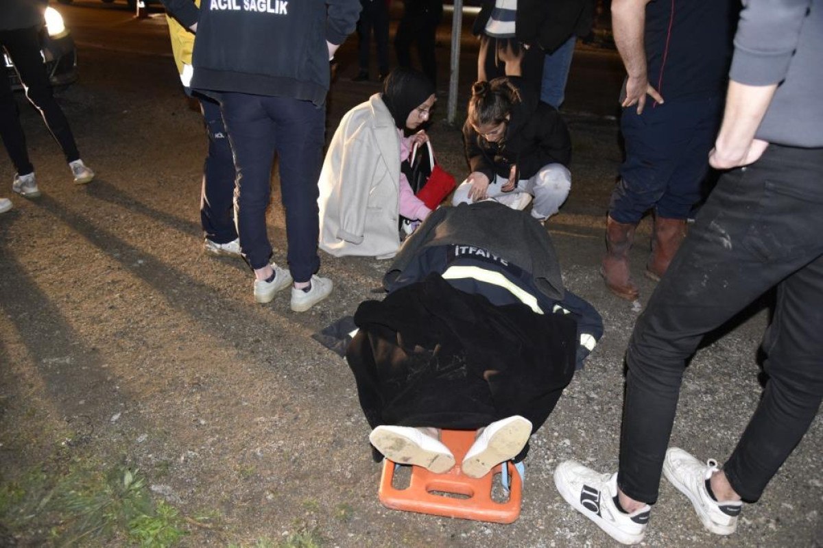 Çarpışmanın tesiriyle savrulan arabalardan biri yolun kenarındaki 2 şahsa çarptı.