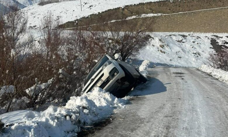 Hakkari’nin Yüksekova ilçesine bağlı Esendere beldesi Güvenli köyü yolunda Mustafa Sistem yönetimindeki hafif ticari araç, buzlanmadan ötürü virajı alamayarak köprüden düştü.