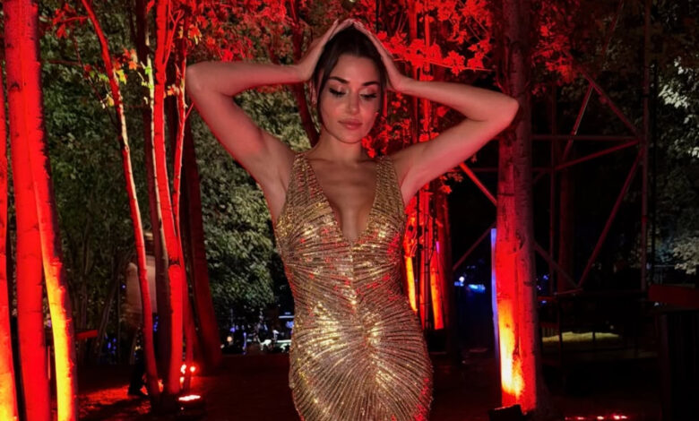 Hande Erçel düğünde! Hakan Sabancı’nın ceketiyle poz verdi
