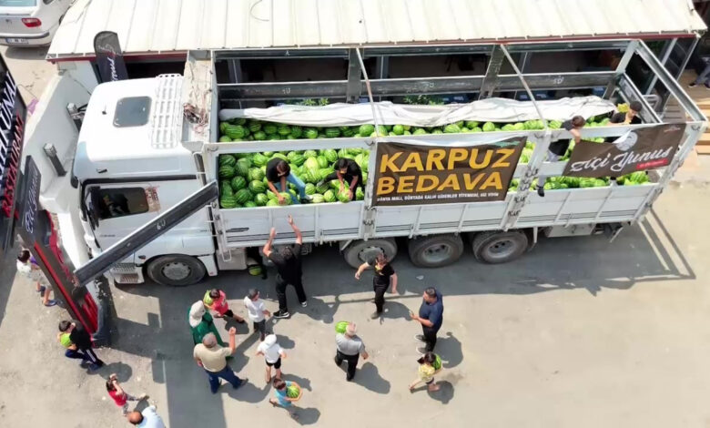 Hatay’da 20 ton karpuzu bedava dağıttı