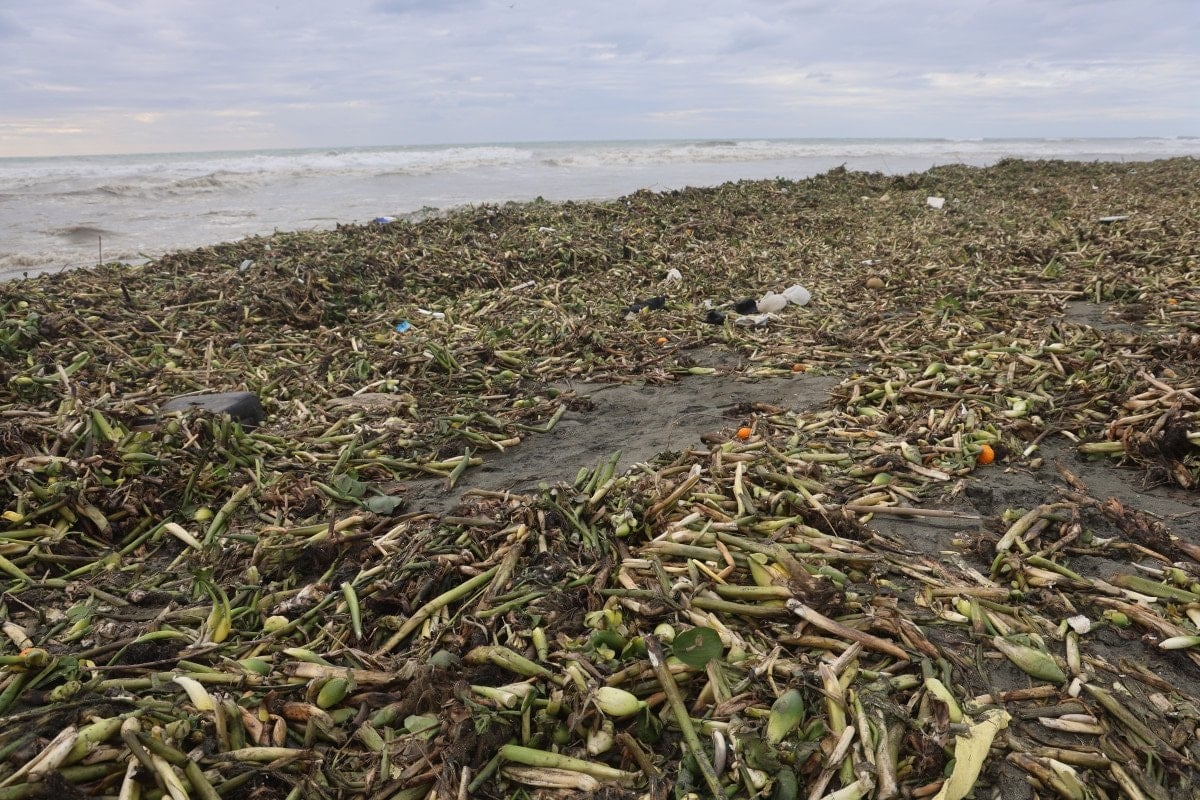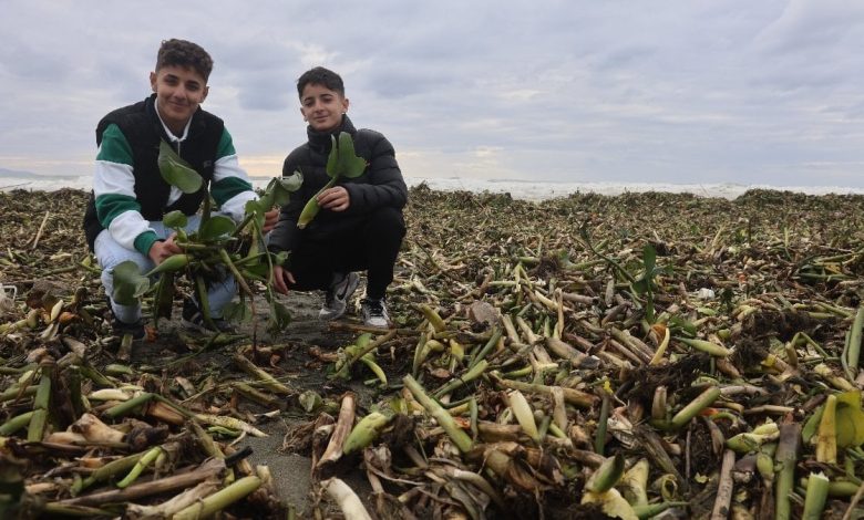 Yaz aylarında Asi Irmağını kaplayan istilacı su sümbülleri, ırmağın debisindeki artışla birlikte Akdeniz’e sürüklendi. Akdeniz’de yaşanan şiddetli dalgalarla birlikte su sümbülleri, Samandağ ilçesinde kıyıya vurdu ve kıyı yeşile büründü.