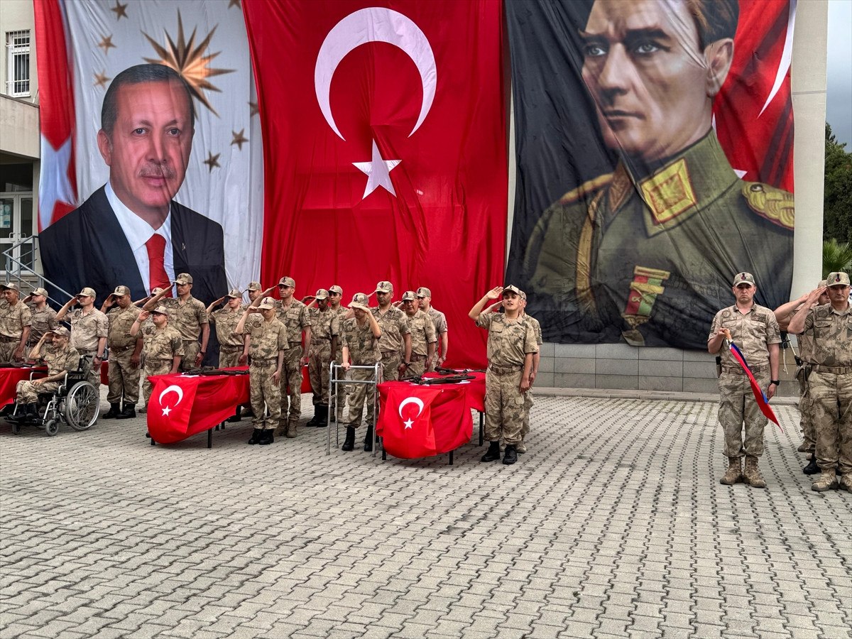 Hatay’ın Dörtyol ilçesinde aileleriyle Kara Hasan Paşa Kışlası’na gelen 14 engelli genç, saç tıraşı olup üniformalarını giymelerinin akabinde eğitim alanına çıktı.
