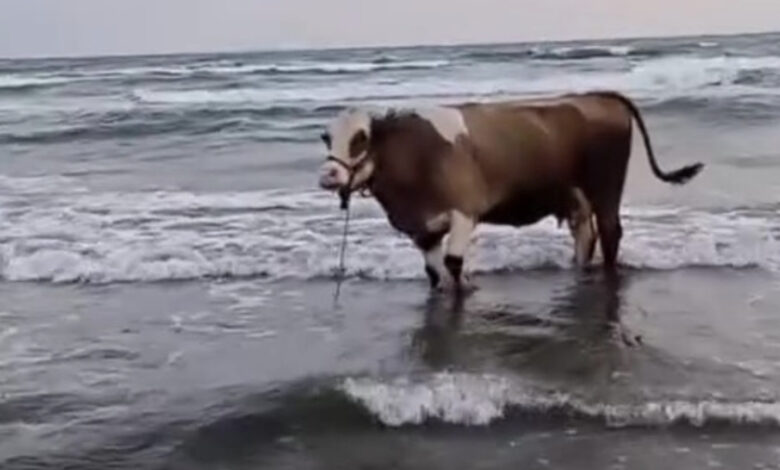 Bir mühlet boyunca denizde gezinen ineğin o anları toplumsal medyada ilgi odağı olurken, bir mühlet sonra hayvan sahibi tarafından denizden çıkarıldı.