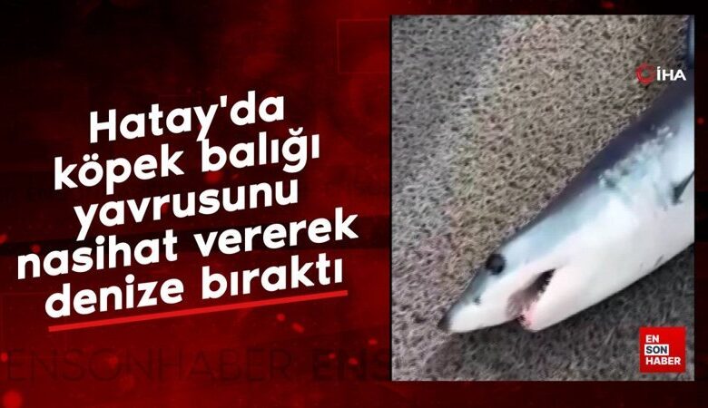 Hatay’da köpek balığı yavrusunu nasihat vererek denize bıraktı
