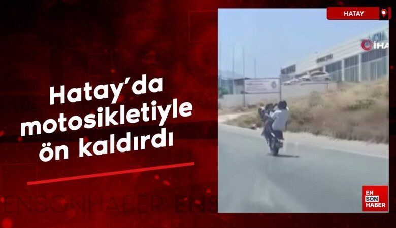 Hatay’da motosikletiyle ön kaldırdı: Yürekleri ağza getirdi