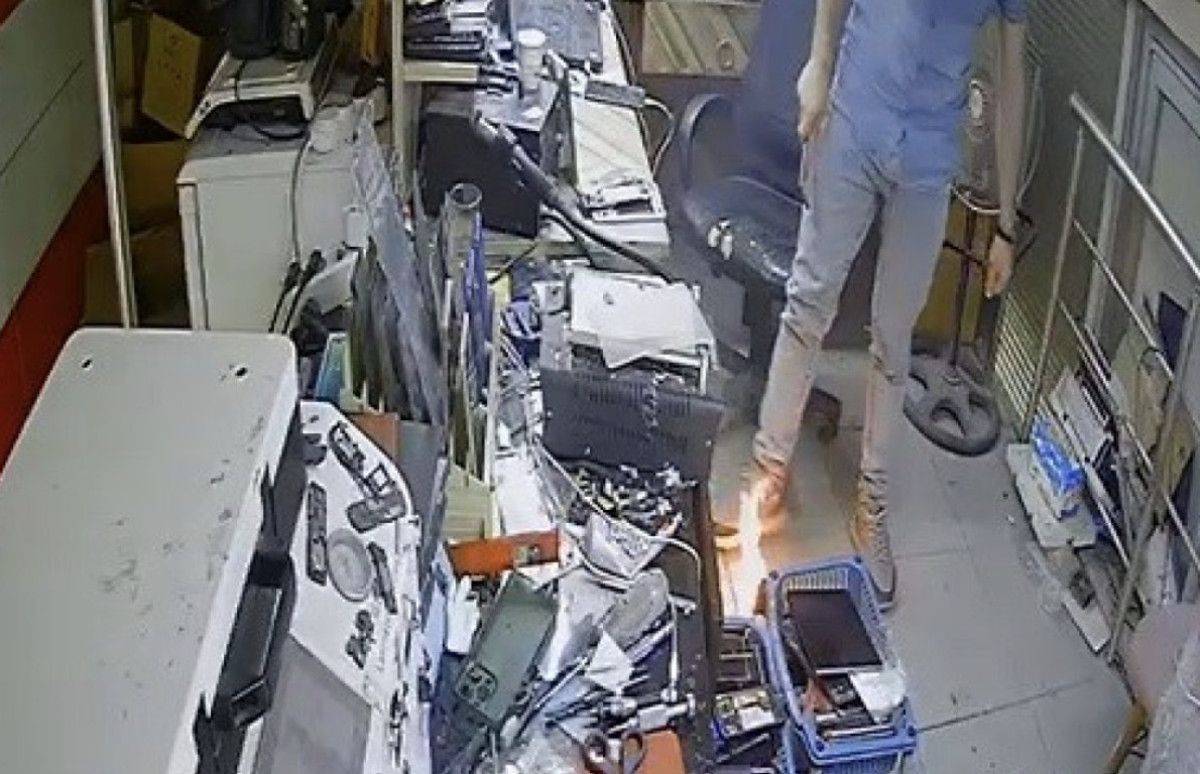 Burada telefon tamiri yapıyoruz. Bir telefon geldi ve tamir edilmesi gerekiyor. Bataryayı ısıtmaya koydum ve 5 dakika unutunca patladı. Kamera manzarasında telefonu aldım ve yere attım. Patlamadan korkmadım zira alıştım. 5 yıldır telefoncu olarak başıma çok geldi ve o yüzden alıştım.