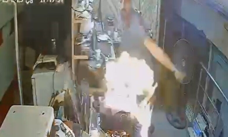 İş yerindeki vatandaşların yaşadığı panik ve patlama anı anbean güvenlik kamerasına yansıdı.