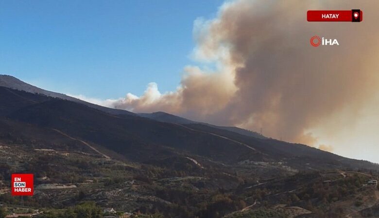 Hatay’da takımların karadan ve havadan müdahalesiyle denetim altına alınmaya çalışılan yangında bölge havadan görüntülendi.