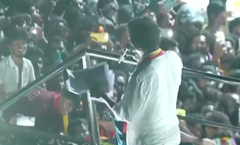 Vijay’i görmek isteyen yaklaşık 120 bin kişi, yalnızca 10 bin kişinin katılmasına müsaade verilen miting alanına akın etti.