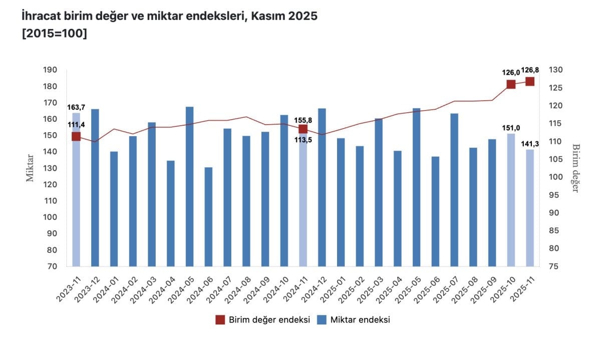 Türkiye İstatistik Kurumu (TÜİK), Kasım 2025 periyodu dış ticaret endekslerini açıkladı.