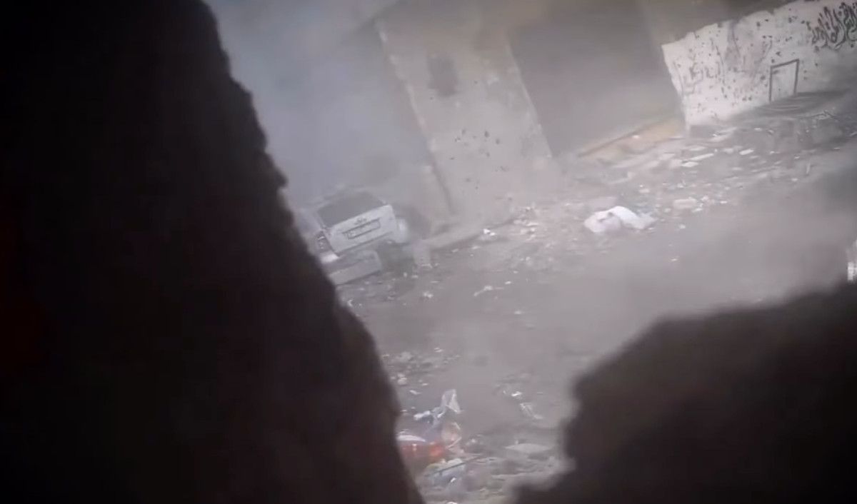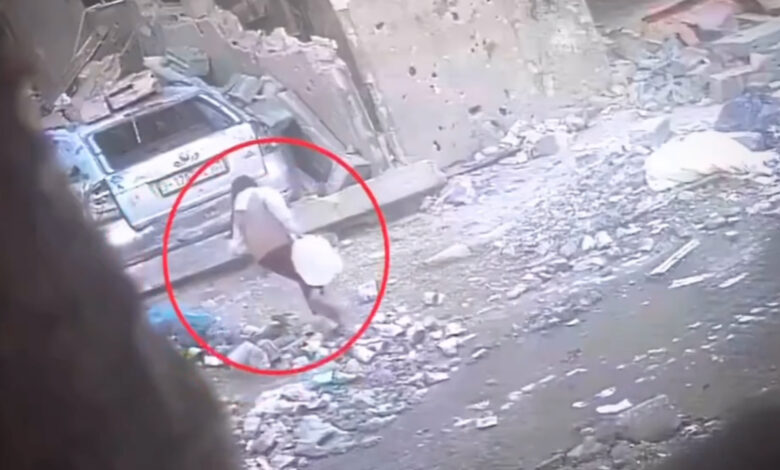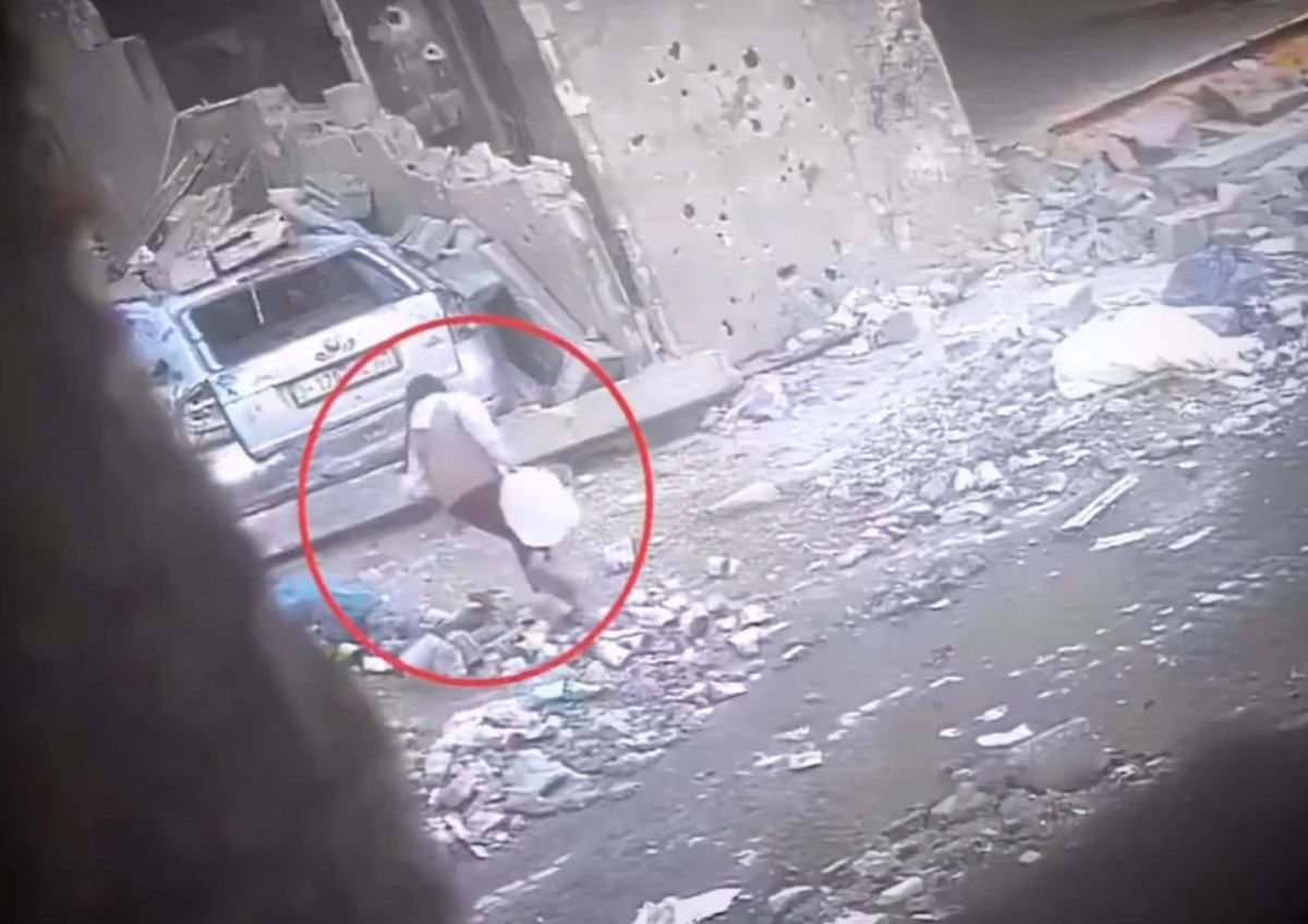 Gazze’de bir güvenlik kamerasın yansıyan manzaralar bu soykırımı gözler önüne seriyor.